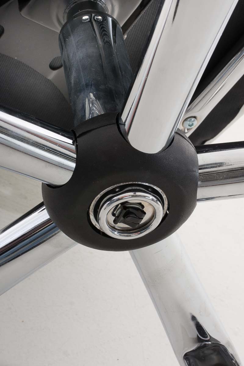 Est placée de façon très solide sur un piétement avec 5 roulettes.