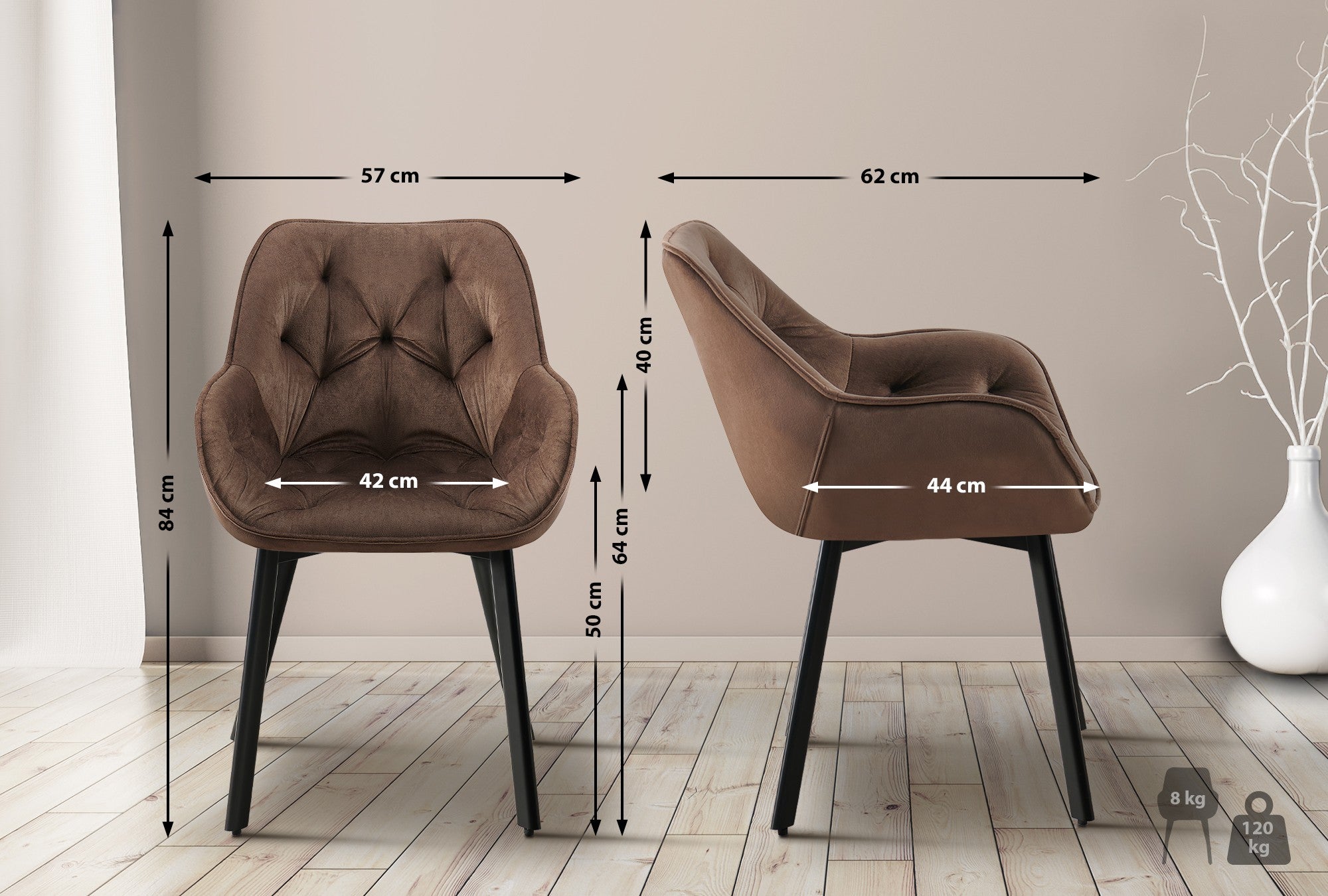 Lot de 2 chaises de salle à manger assise pivotante en velours marron motif matelassé cadre métal 10_0007560