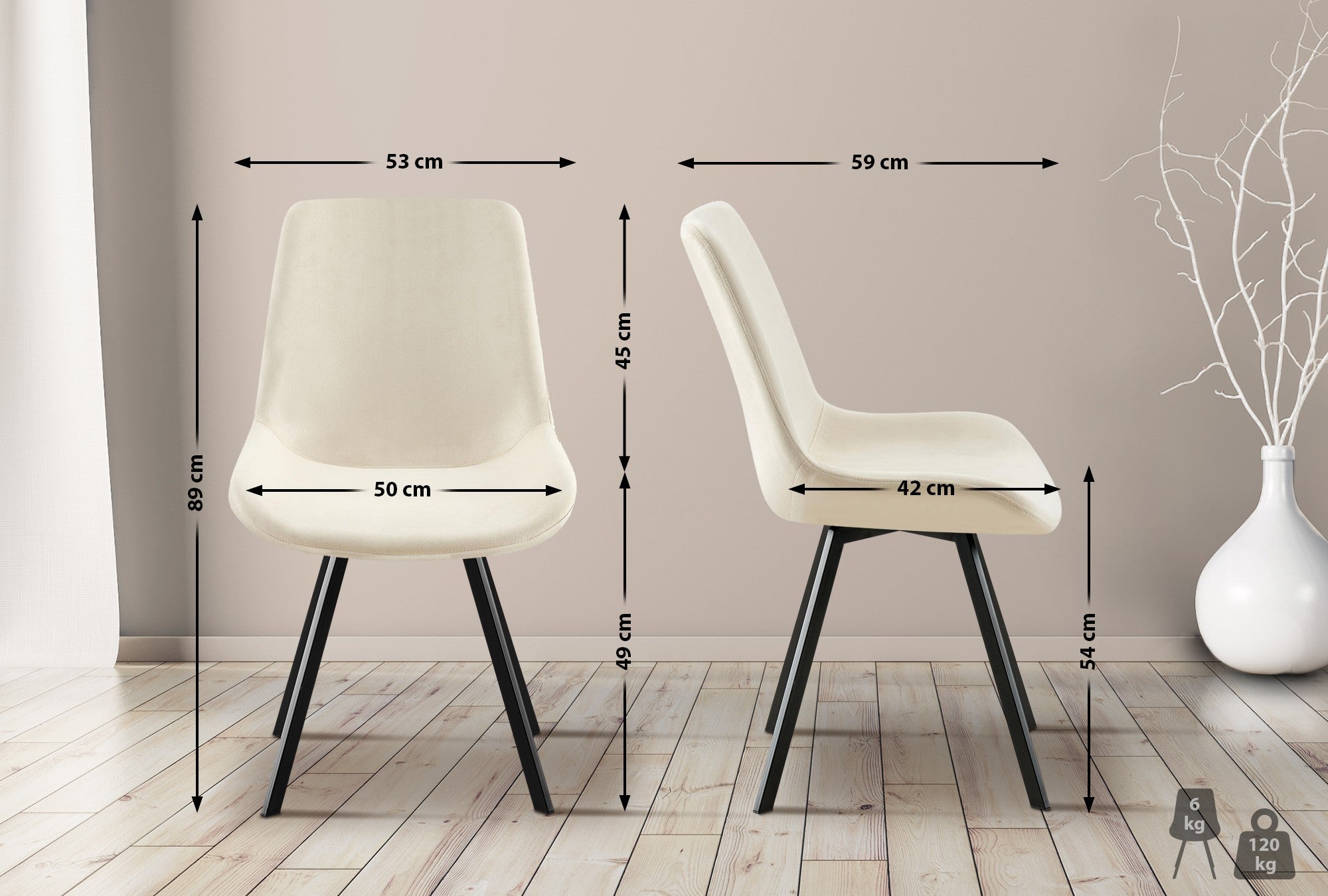 Lot de 2 chaises de salle à manger pivotant à 360 degrés en velours crème cadre en métal noir 10_0007587