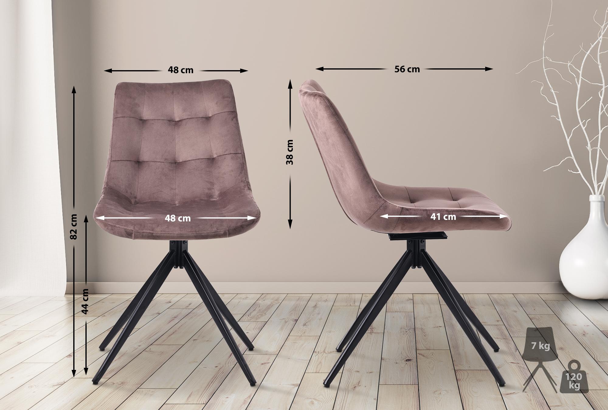 Lot de 2 chaises contemporaine pivotante avec pieds croisés en métal noir et assise en velours marron 10_0007594
