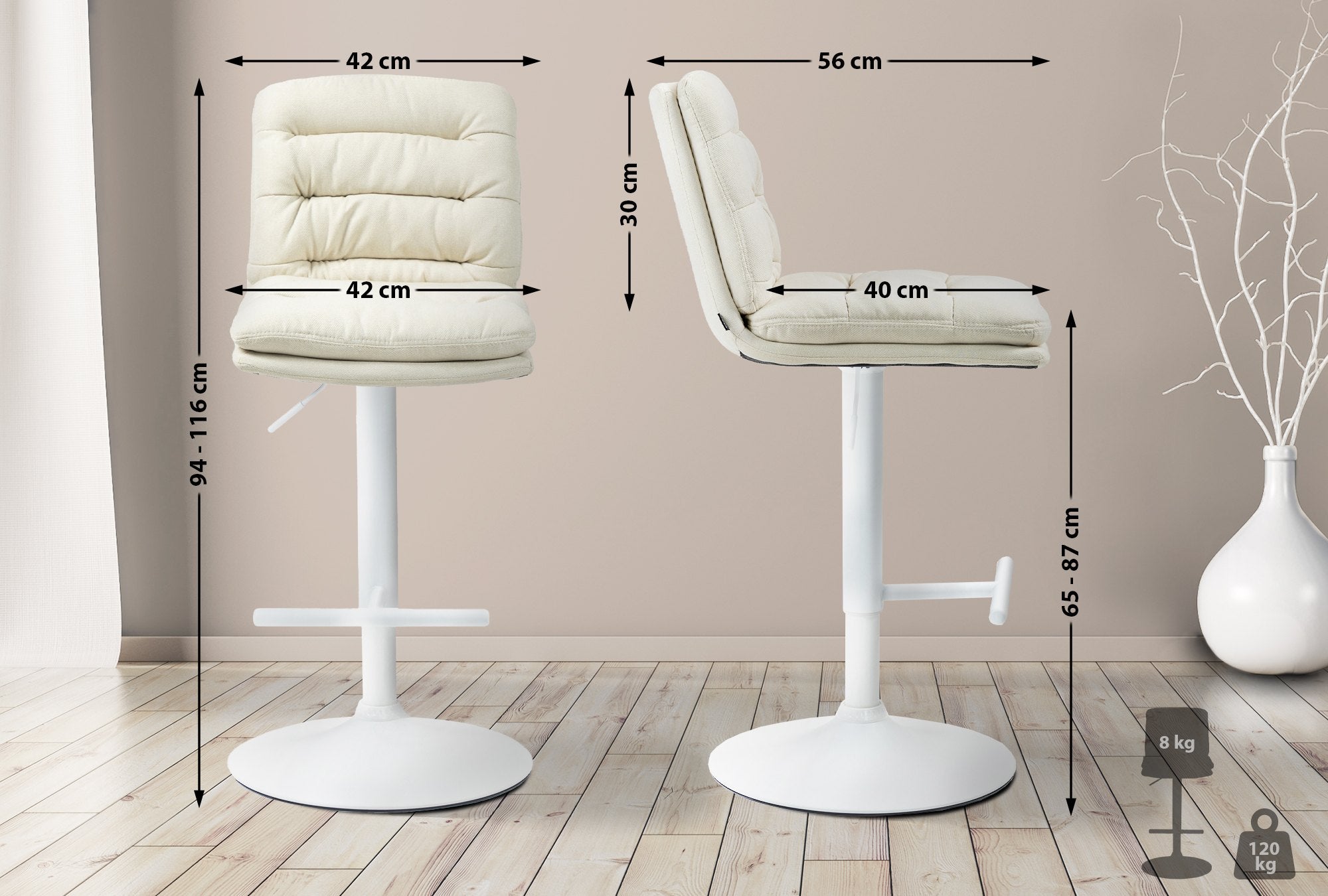 Lot de 2 tabourets de bar avec repose-pieds et dossier assise rembourré en tissu crème et métal blanc 10_0006755