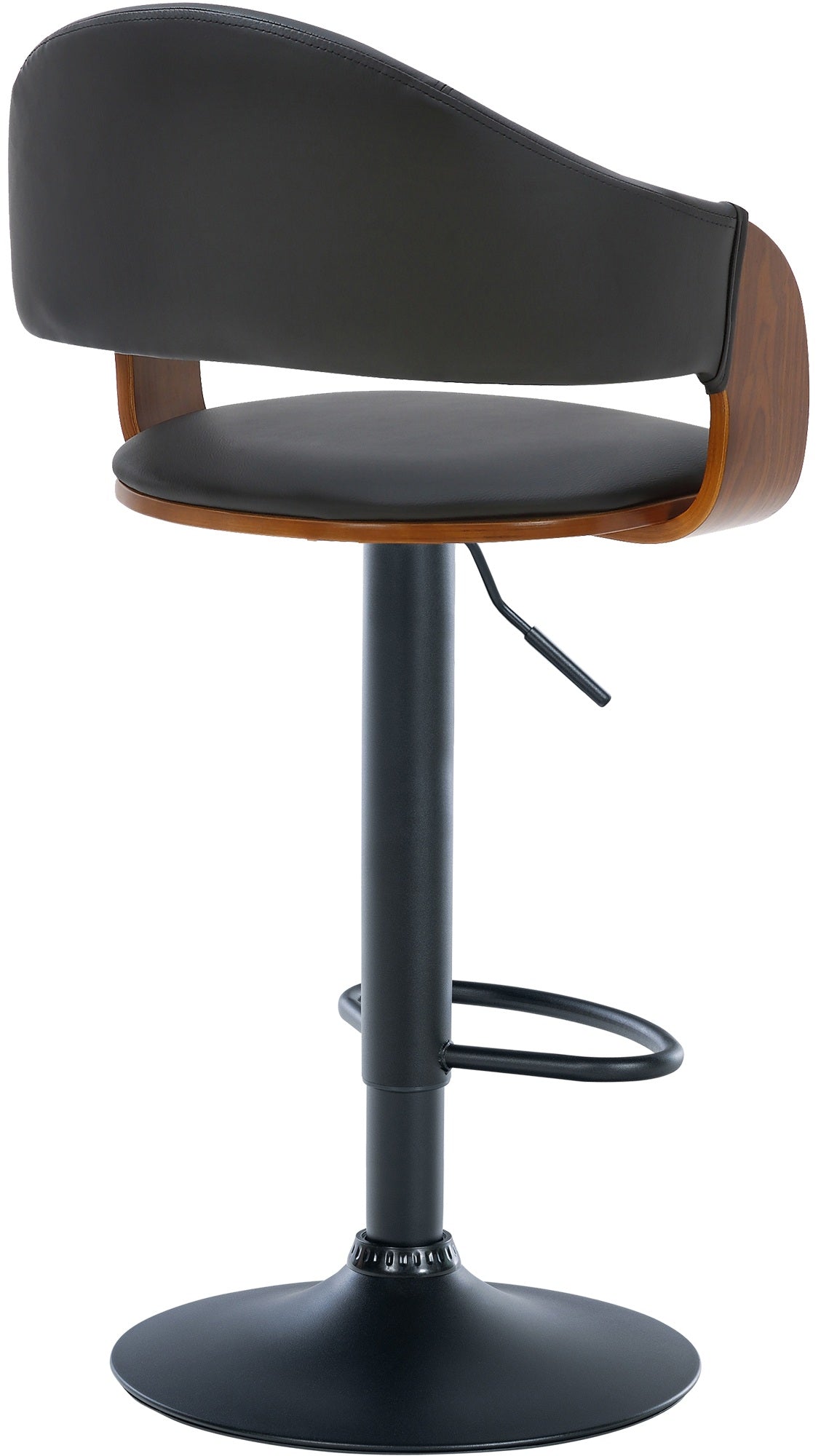 Lot de 2 tabourets de bar design rétro chic assise en PVC noir et bois noyer piètement en métal noir 10_0005877