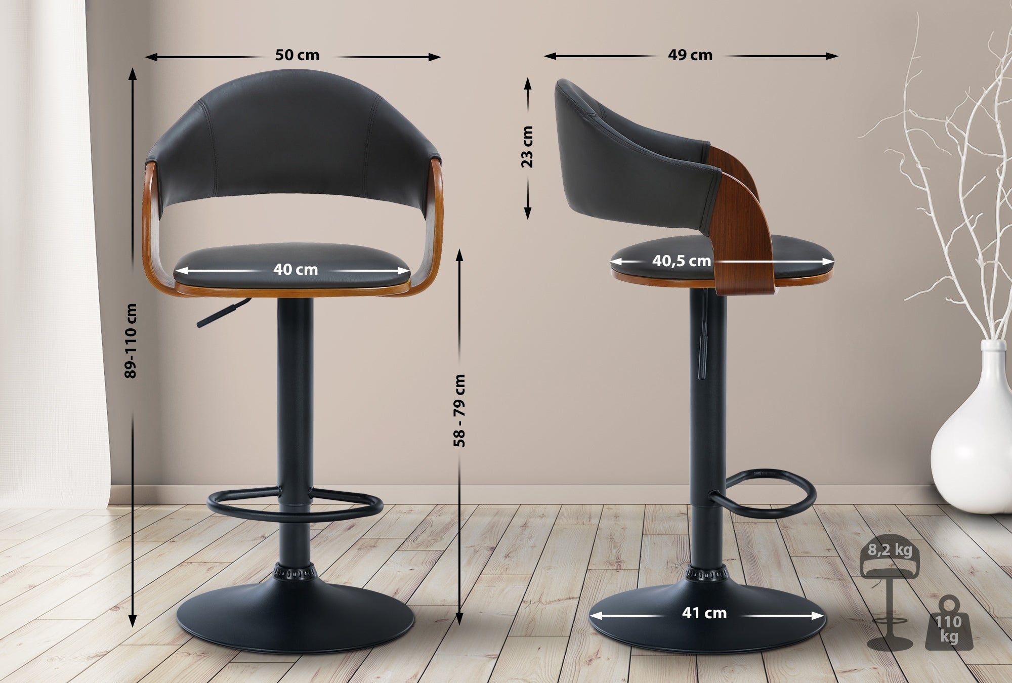Le tabouret de bar en similicuir allie design moderne et confort optimal. Ce tabouret de bar est composé d'une structure en bois robuste et d'une assise rembourrée en similicuir facile d'entretien. Pour une position assise optimale, le tabouret de bar est facilement réglable en hauteur et pivote à 360 degrés. Pour plus de confort, le tabouret de bar est doté d'un repose-pieds intégré qui favorise une posture assise droite et confortable. Le protège-sol sous le piètement en trompette protège votre sol des rayures disgracieuses.