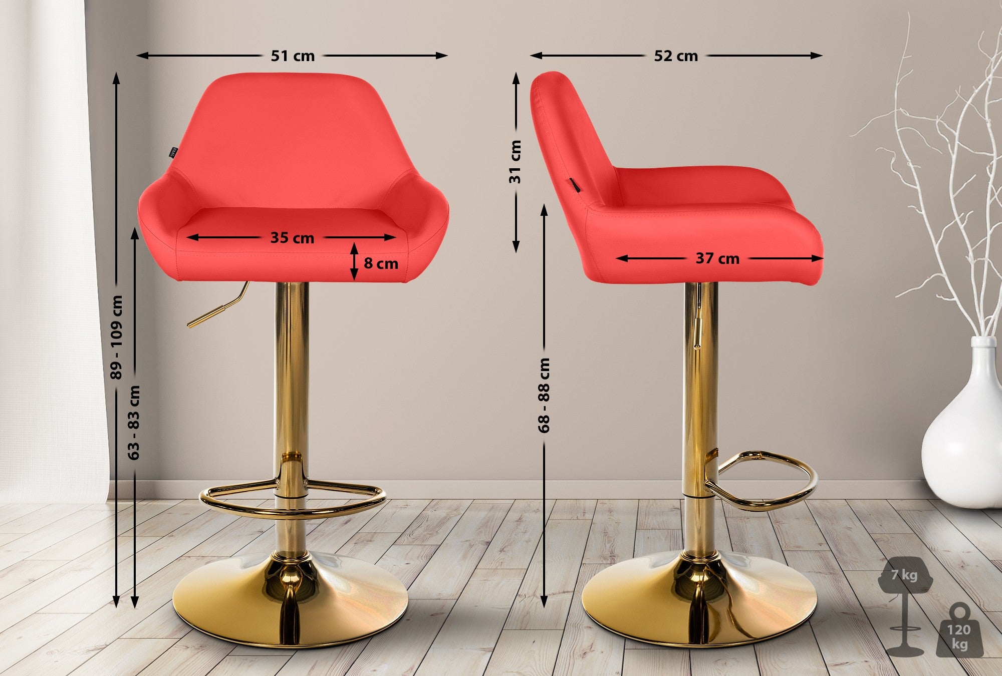 Lot de 2 tabourets de bar repose-pieds en forme d'arc en métal doré assise en PVC rouge TDB10799
