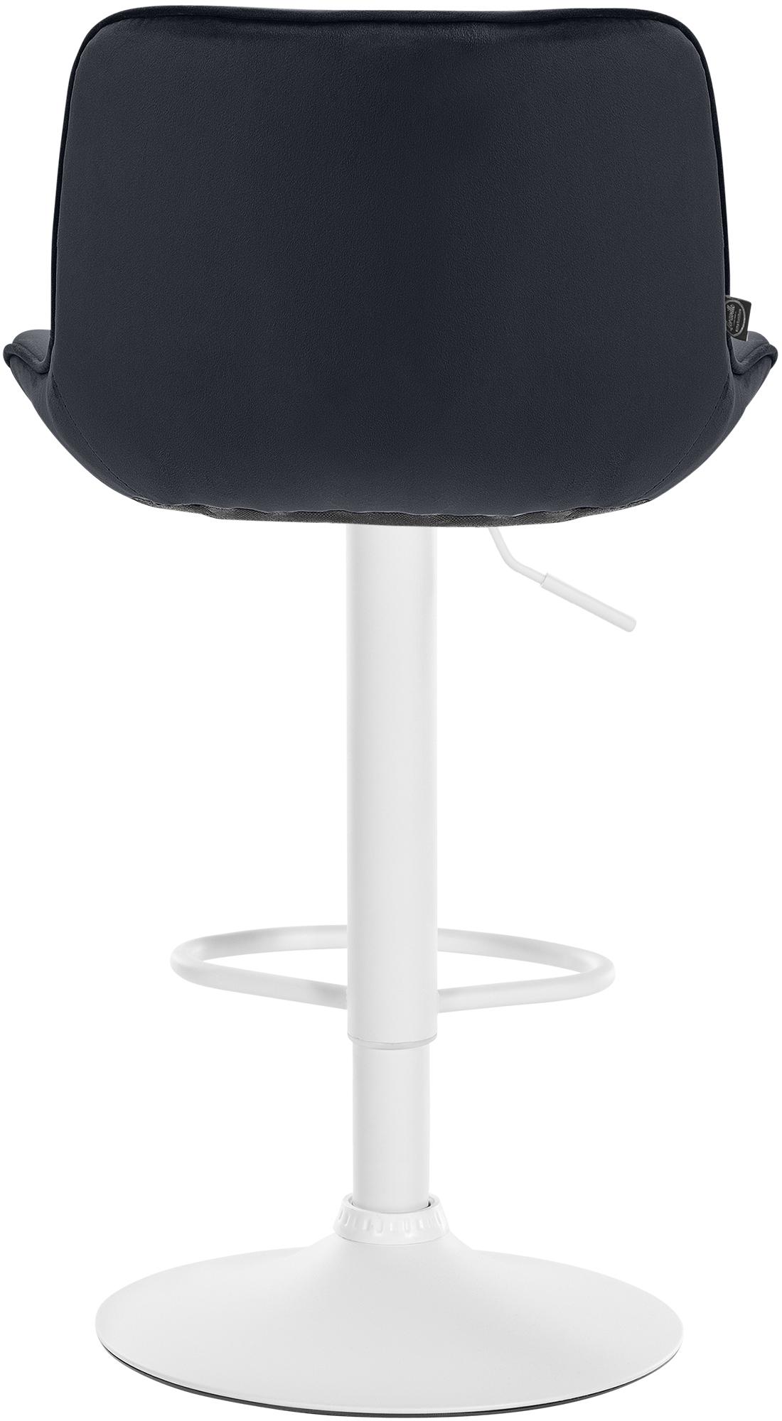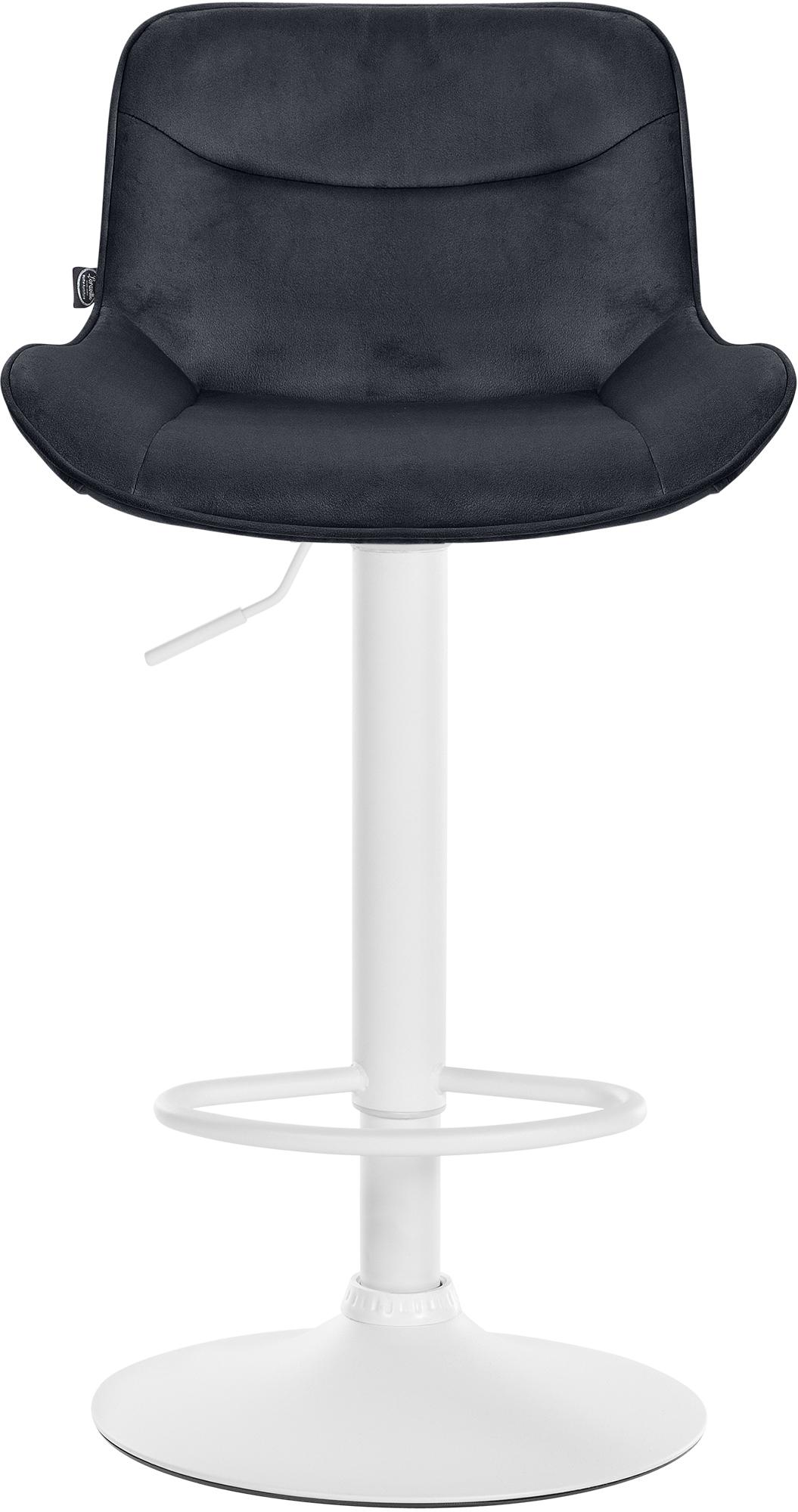 La structure en métal et le piètement en trompette garantissent stabilité et durabilité. Le repose-pieds intégré s'ajuste à la hauteur de l'assise et offre un soutien supplémentaire. Le revêtement en velours confère au tabouret de bar une allure élégante et une assise confortable. Les patins de protection protègent le sol des rayures.