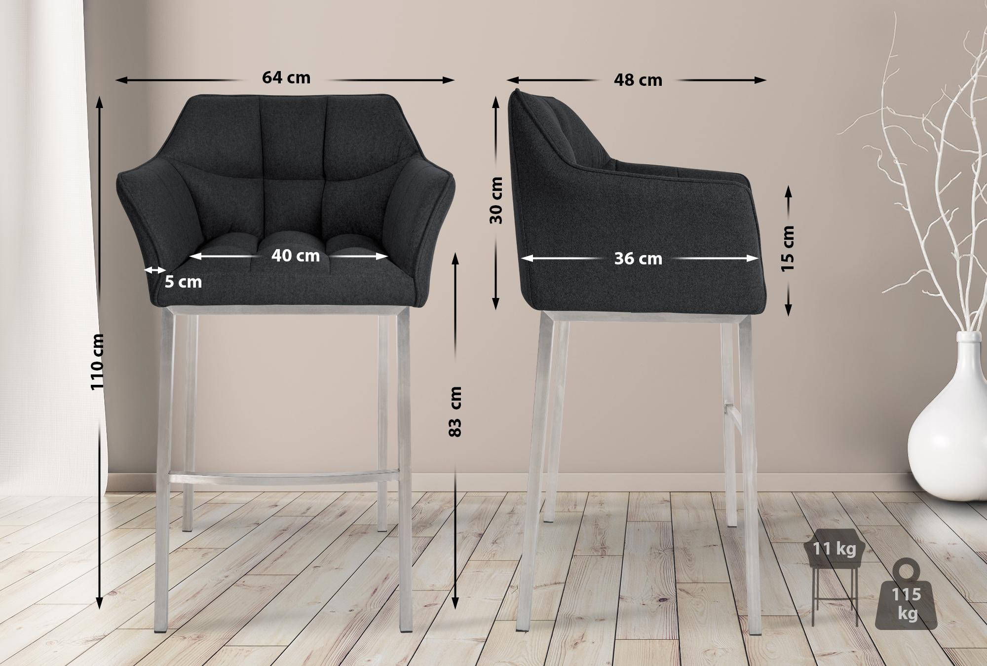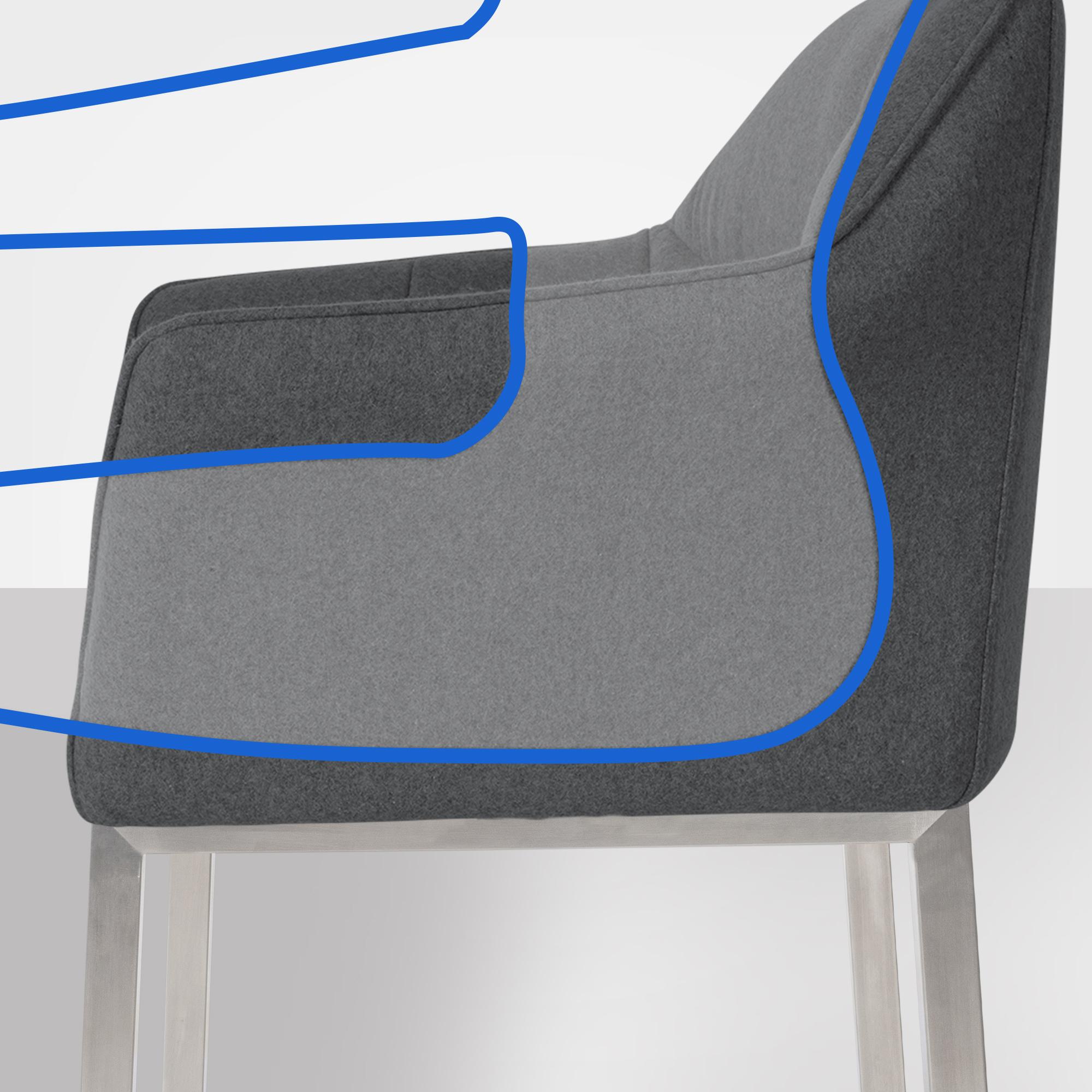 Tabouret de bar x1 assise enveloppante capitonnée en feutrine anthracite avec structure à 4 pieds en acier inoxydable 10_0006785