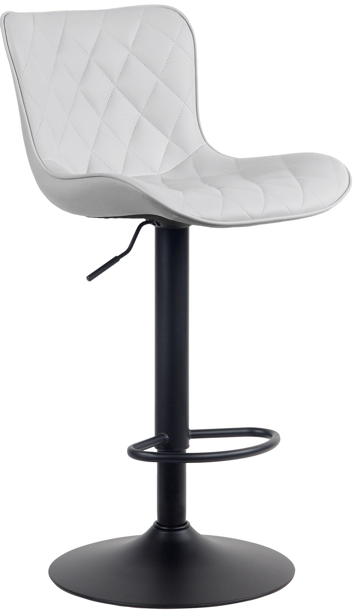 Tabouret de bar x1 coutures décoratives pied trompette hauteur réglable en métal noir assise en PVC blanc 10_0004856