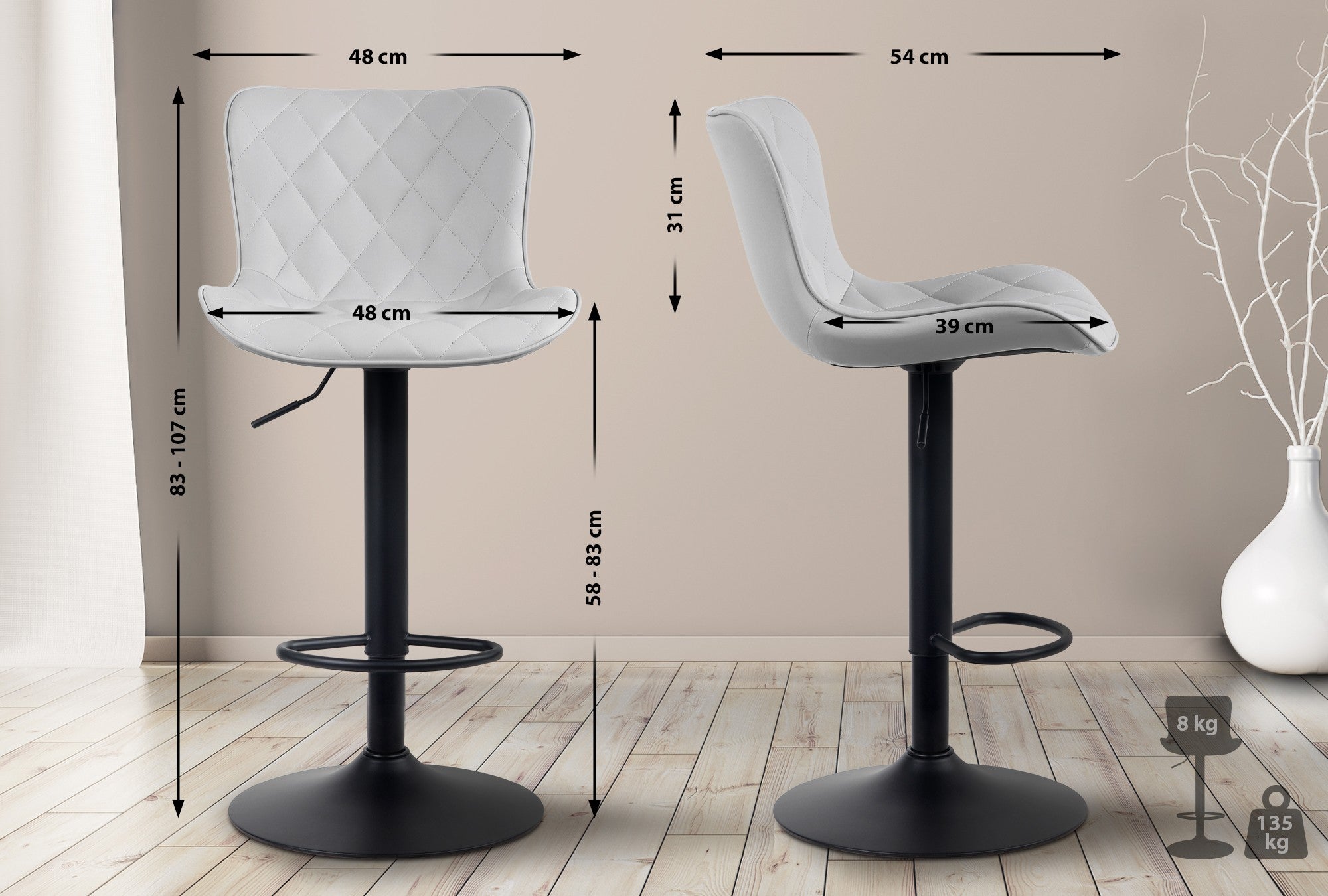 Hauteur totale: 83 - 107 cm