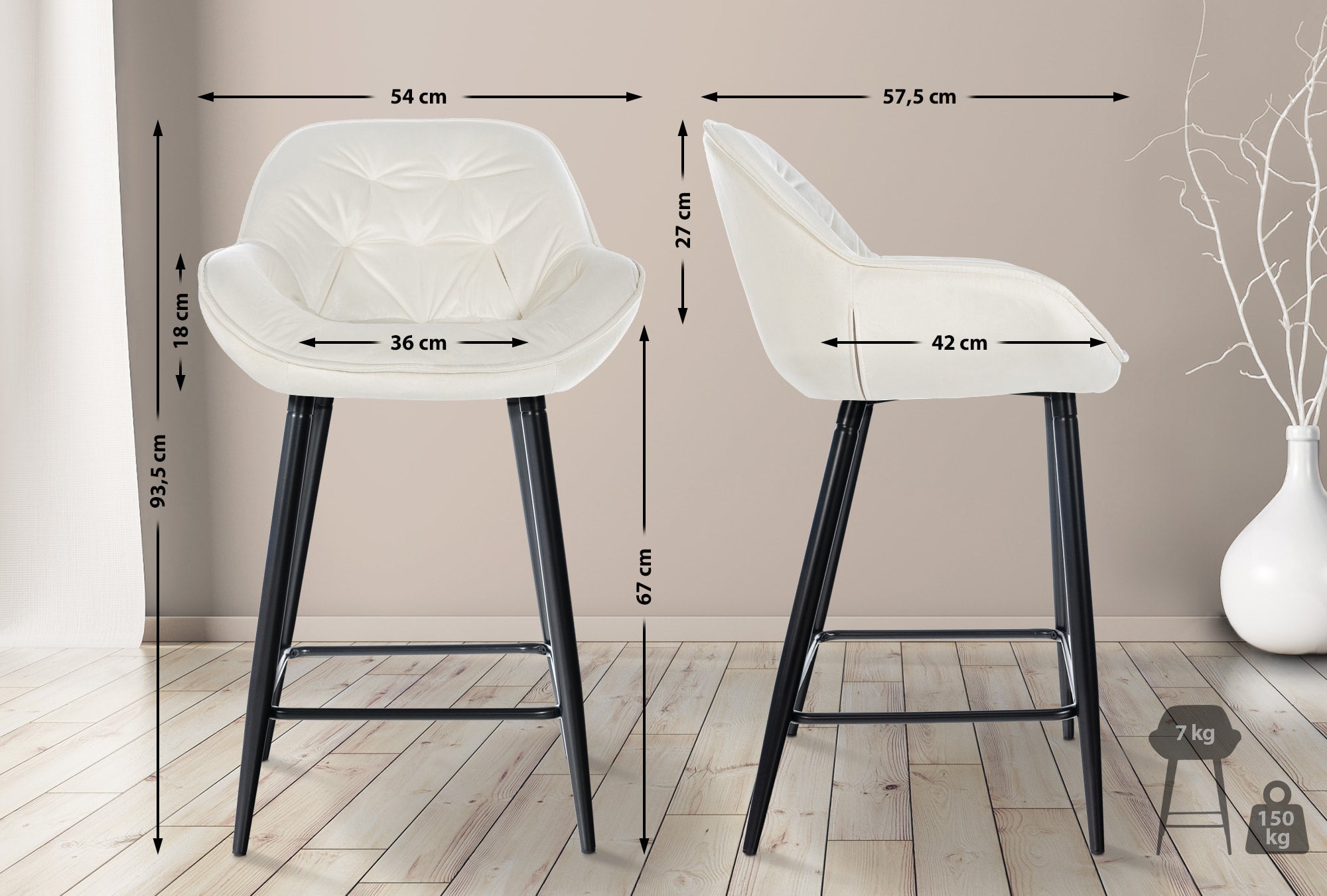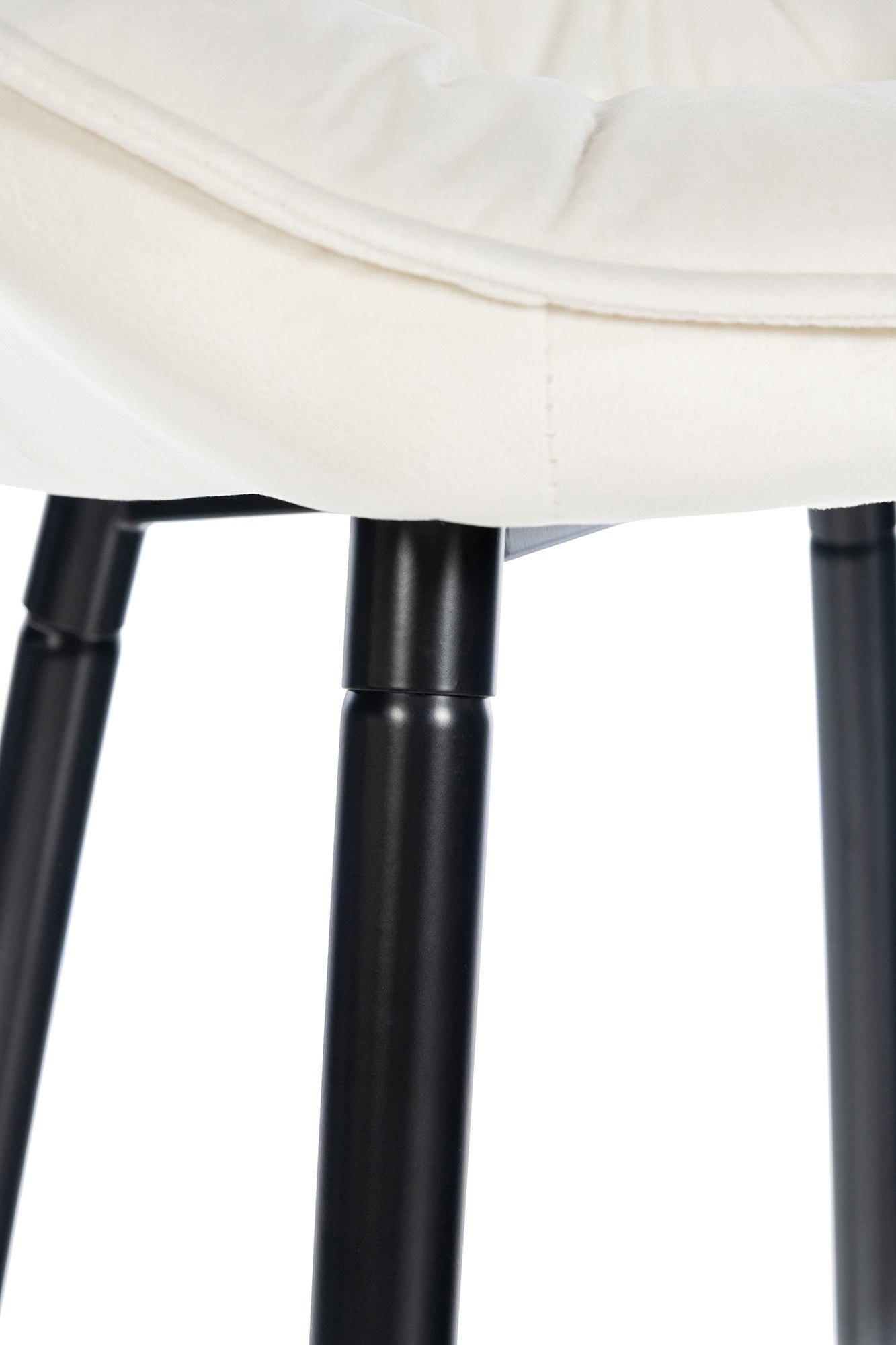 Tabouret de bar x1 moderne en velours crème assise enveloppante capitonnée pieds métal noir 10_0006023