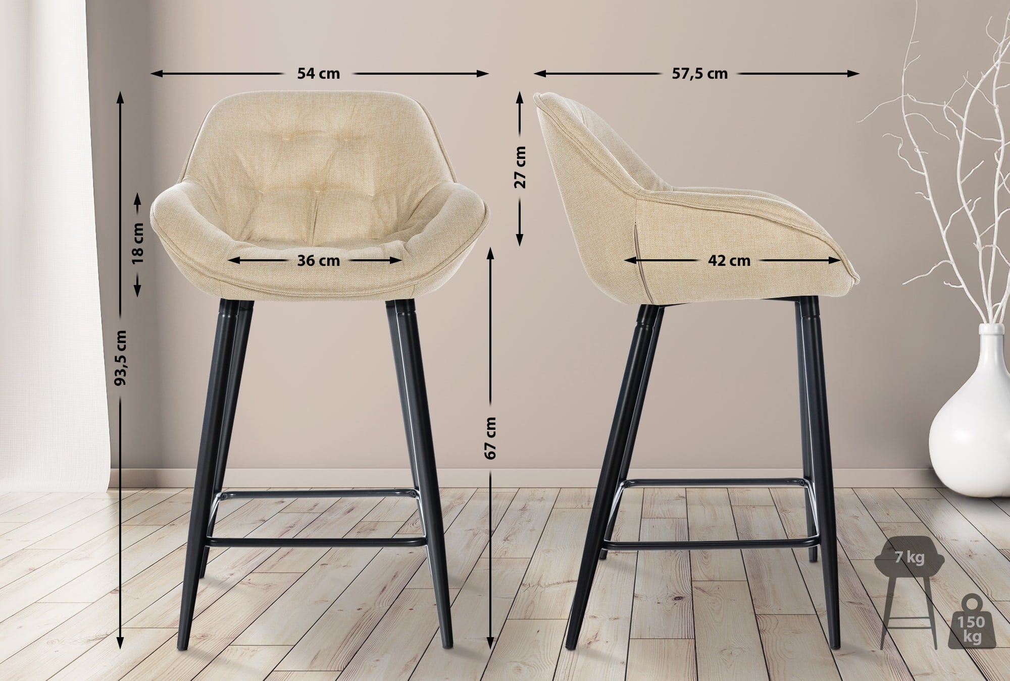 Tabouret de bar chaise haute x1 assise effet capitonnée en tissu crème et métal noir 10_0004901