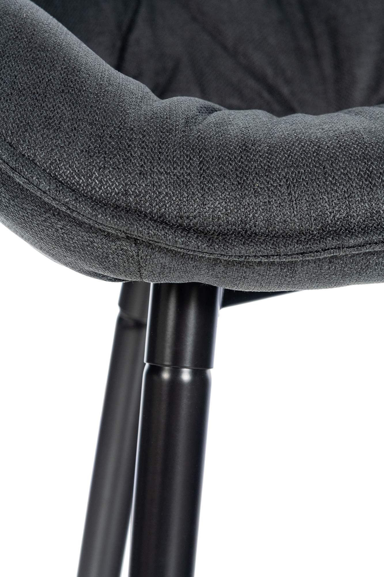 Tabouret de bar chaise haute x1 assise effet capitonnée en tissu gris foncé et métal noir 10_0004900