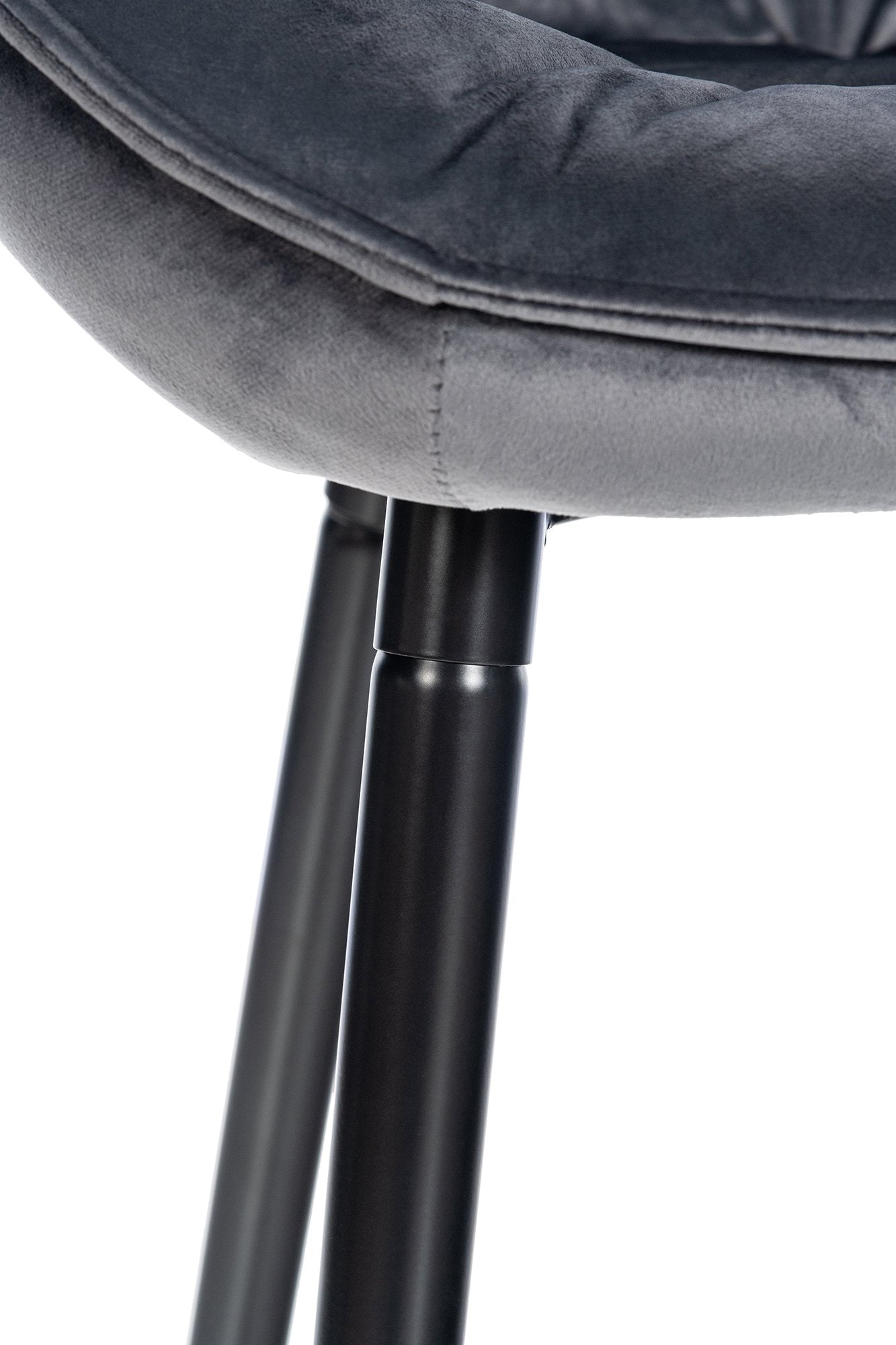 Tabouret de bar chaise haute x1 assise effet capitonnée en velours gris foncé et métal noir 10_0004892