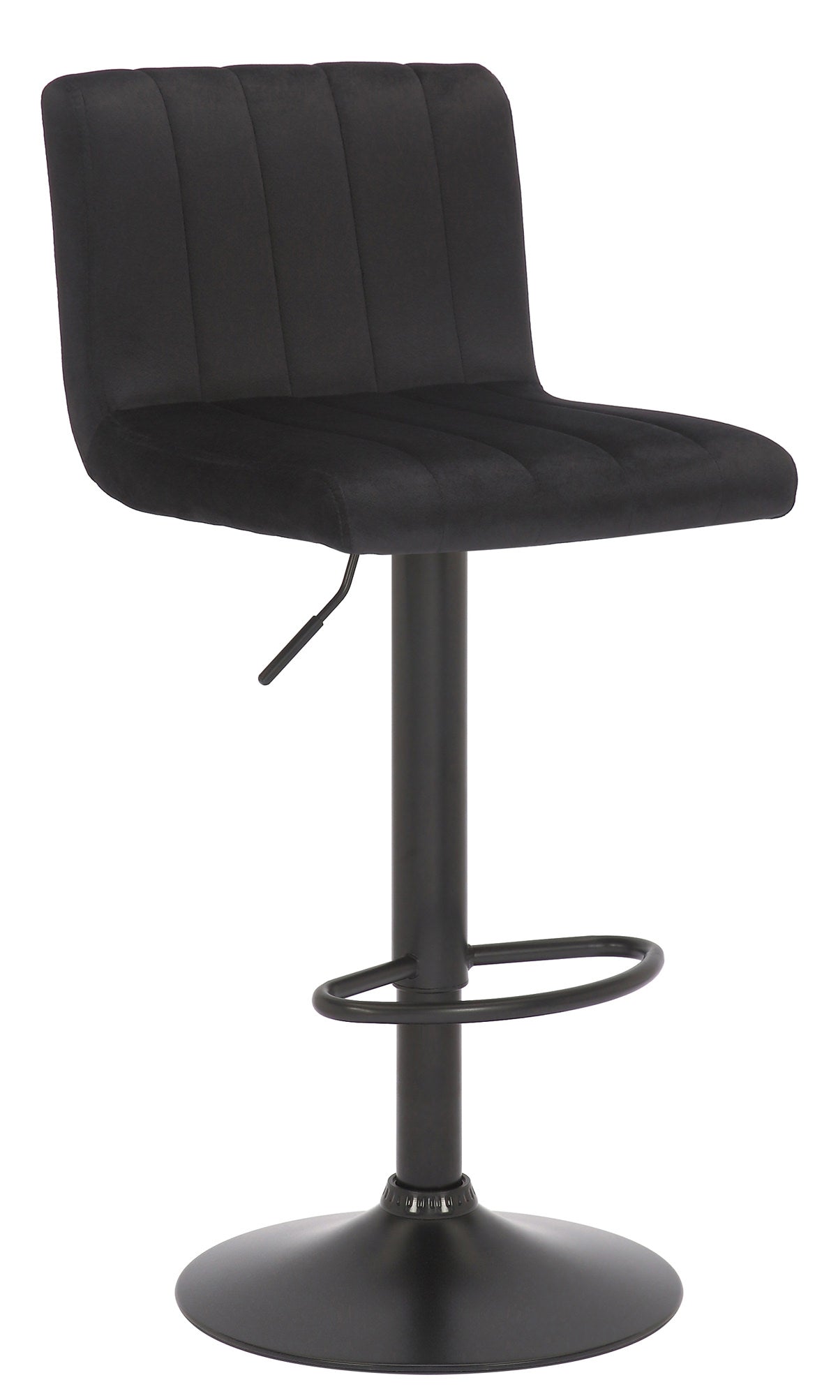 Tabouret de bar x1 pivotant hauteur réglable assise surpiqué en velours noir et métal noir 10_0004998