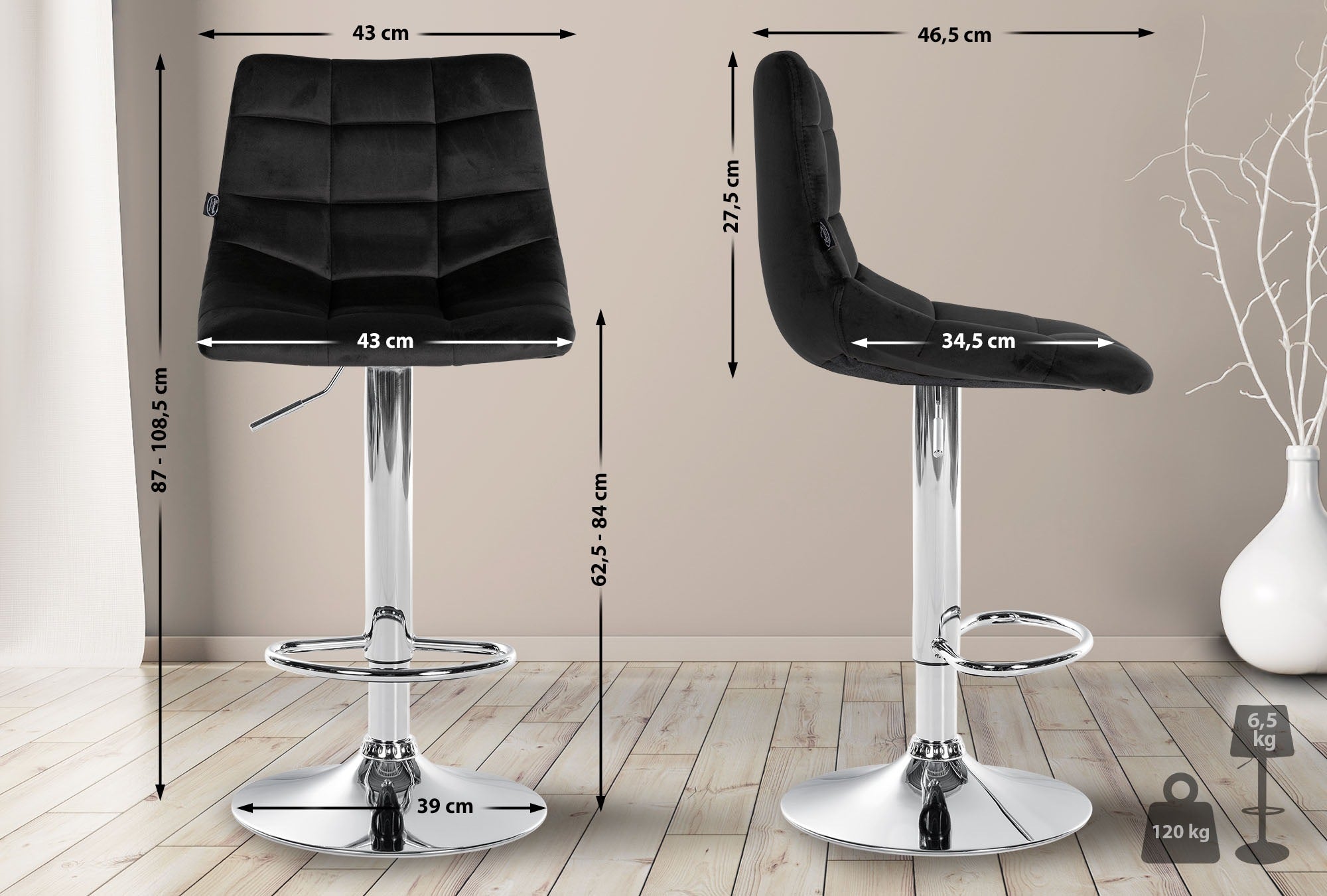 L'élégant tabouret de bar impressionne par son piètement en trompette réglable et son repose-pieds assorti, pour une assise confortable. La hauteur du tabouret s'ajuste rapidement et facilement à vos besoins, garantissant un ajustement parfait à votre table ou à votre comptoir. Le tabouret de bar pivote également à 360°, vous permettant de bouger librement.