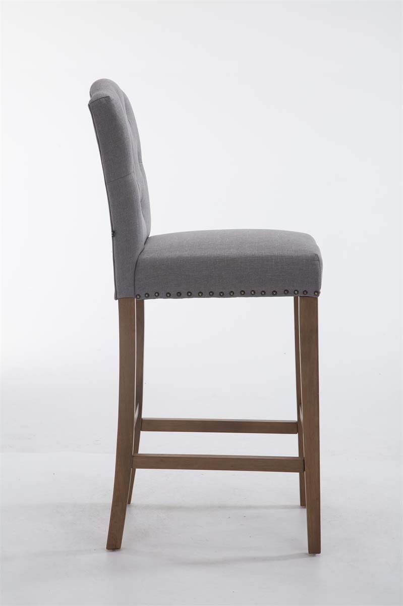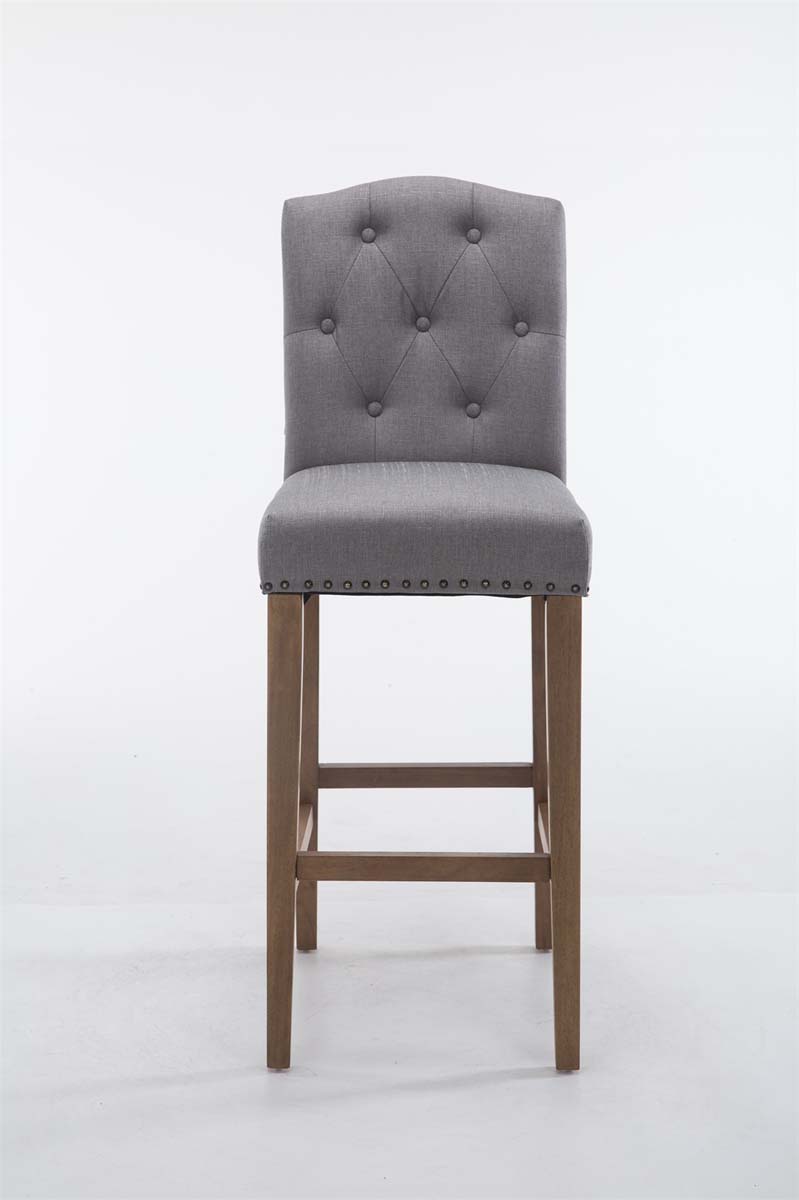 Tabouret de bar x1 dossier haut assise en tissu gris clair capitonné pieds en bois marron clair 10_0006567