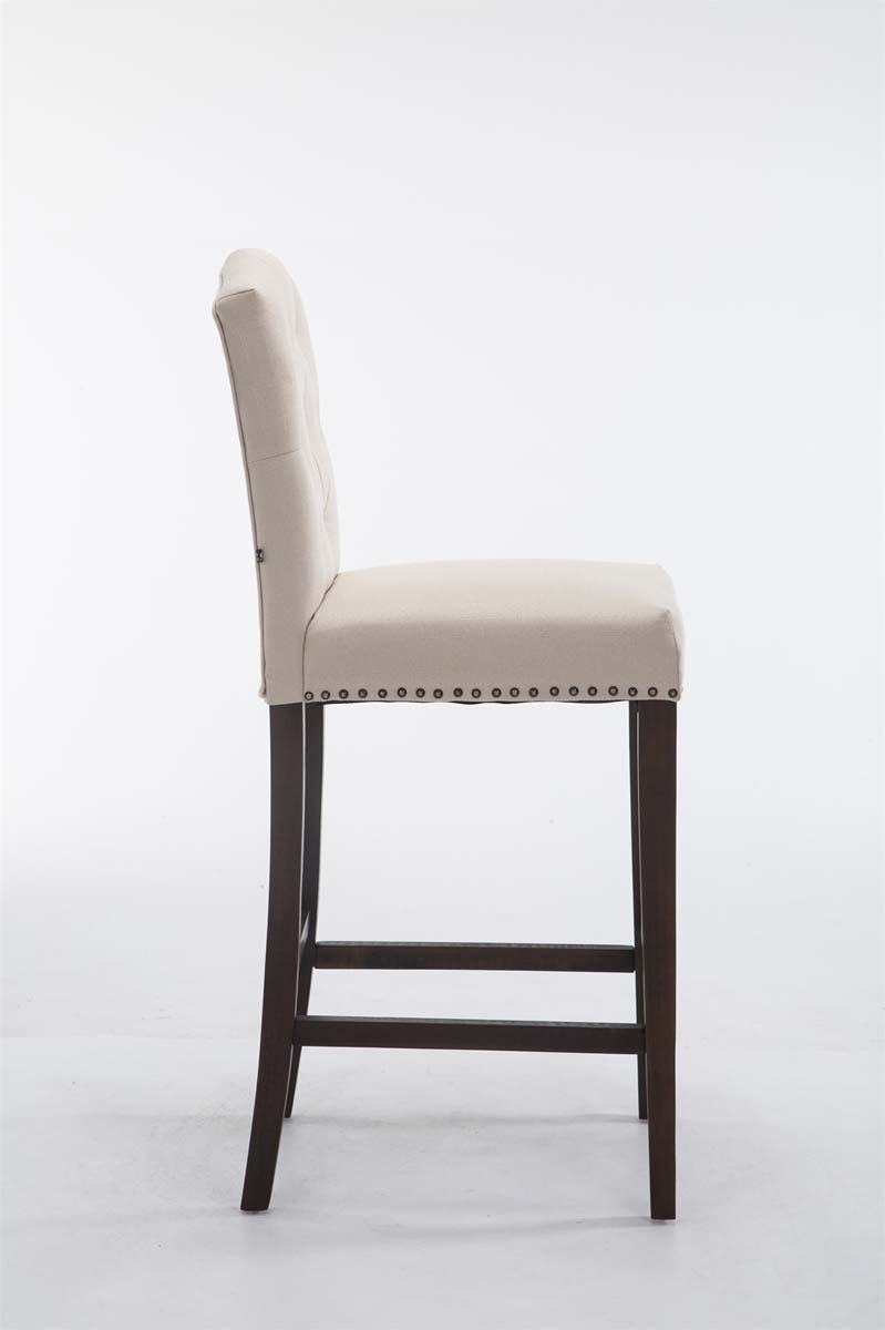 Tabouret de bar x1 dossier haut assise en tissu crème capitonné pieds en bois marron foncé 10_0006438