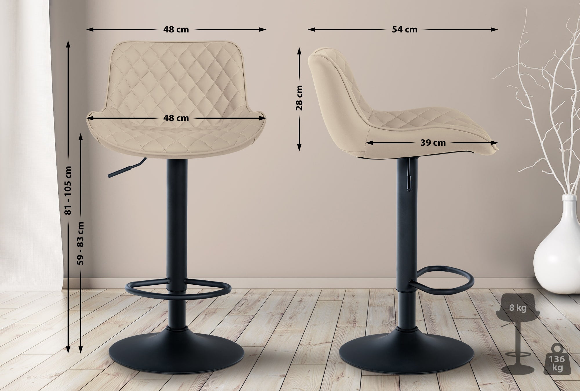 Tabouret de bar x1 assise avec coutures décoratives losange en PVC crème et pieds en métal noir 10_0005225