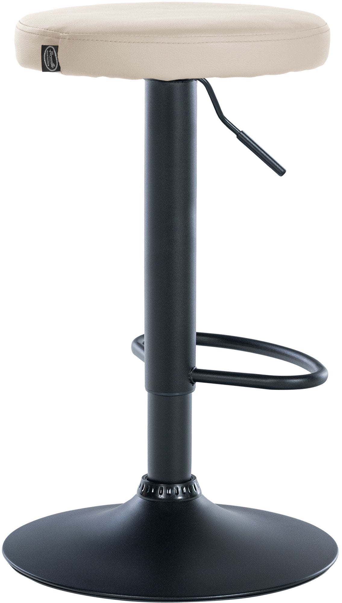 Tabouret de bar x1 design simple hauteur réglable revêtement en PVC crème pieds en métal noir 10_0005343