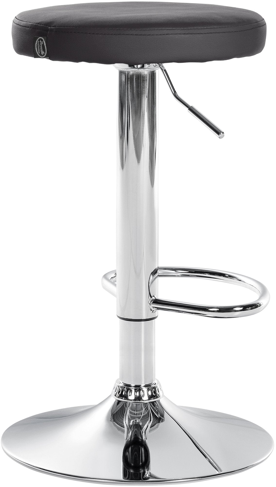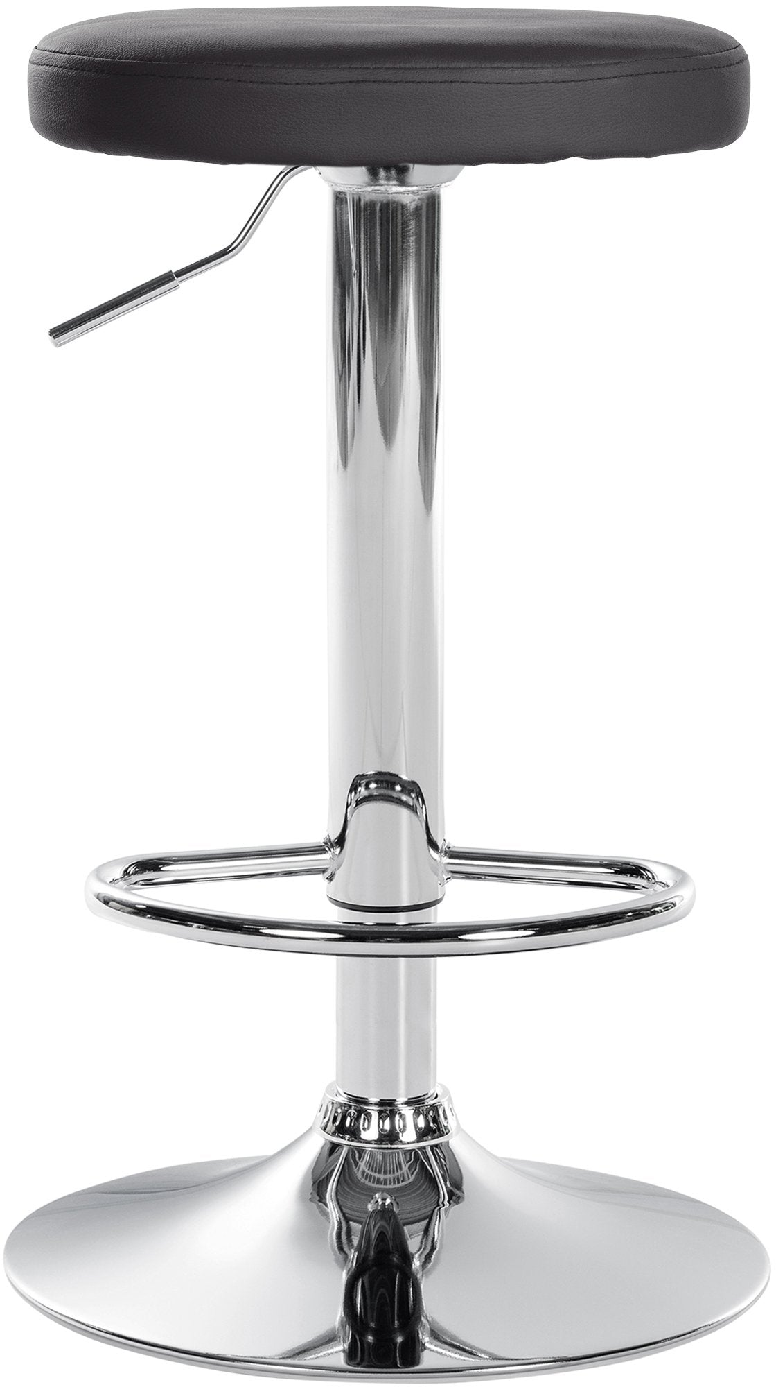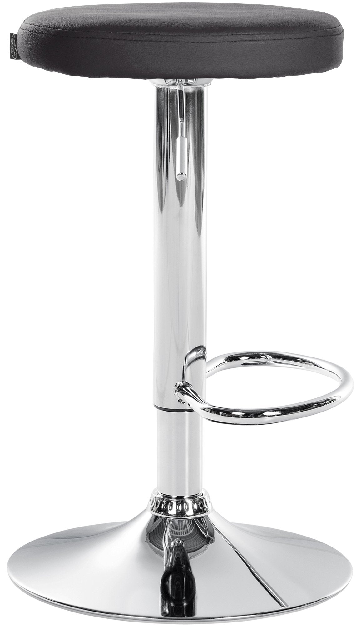 Tabouret de bar x1 design simple hauteur réglable revêtement en PVC noir pieds en métal aspect chromé 10_0006397