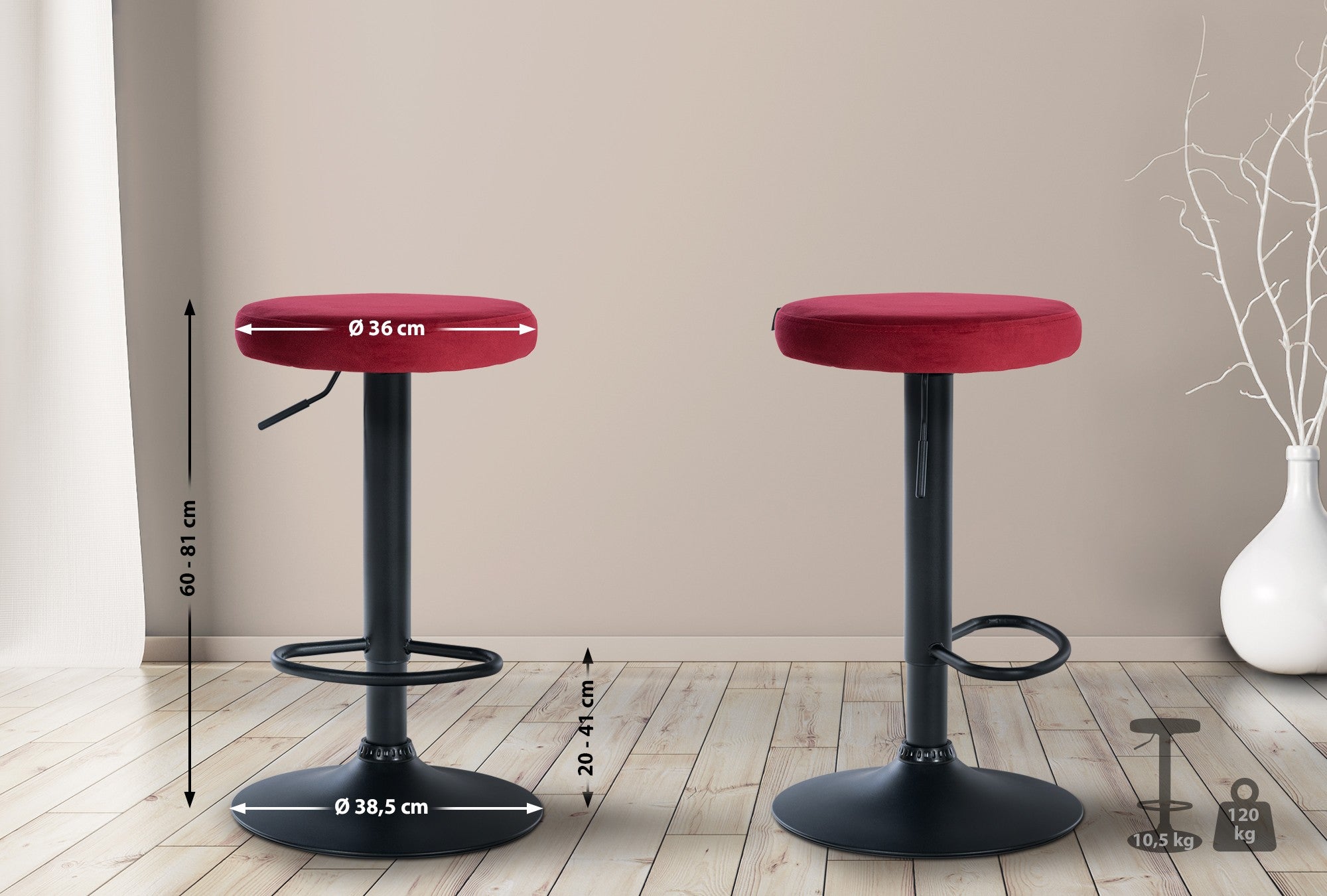 Tabouret de bar x1 design simple hauteur réglable revêtement en velours rouge pieds en métal noir 10_0006534