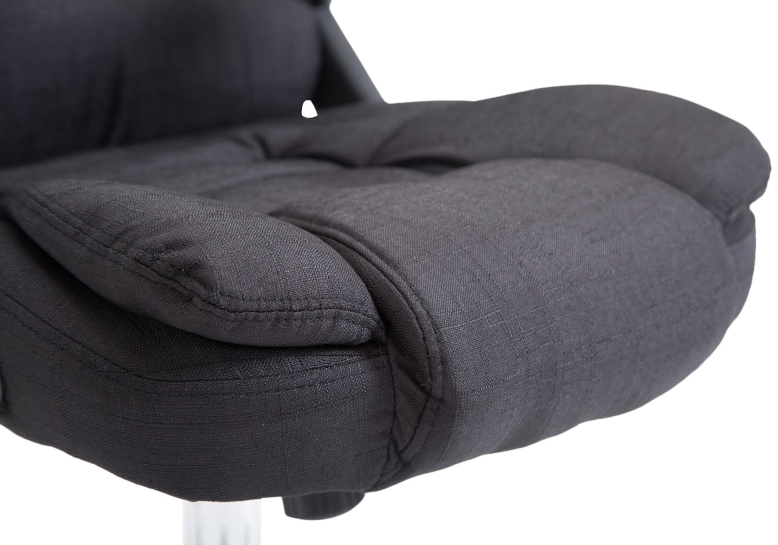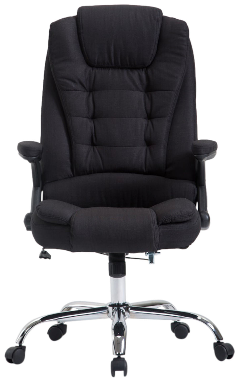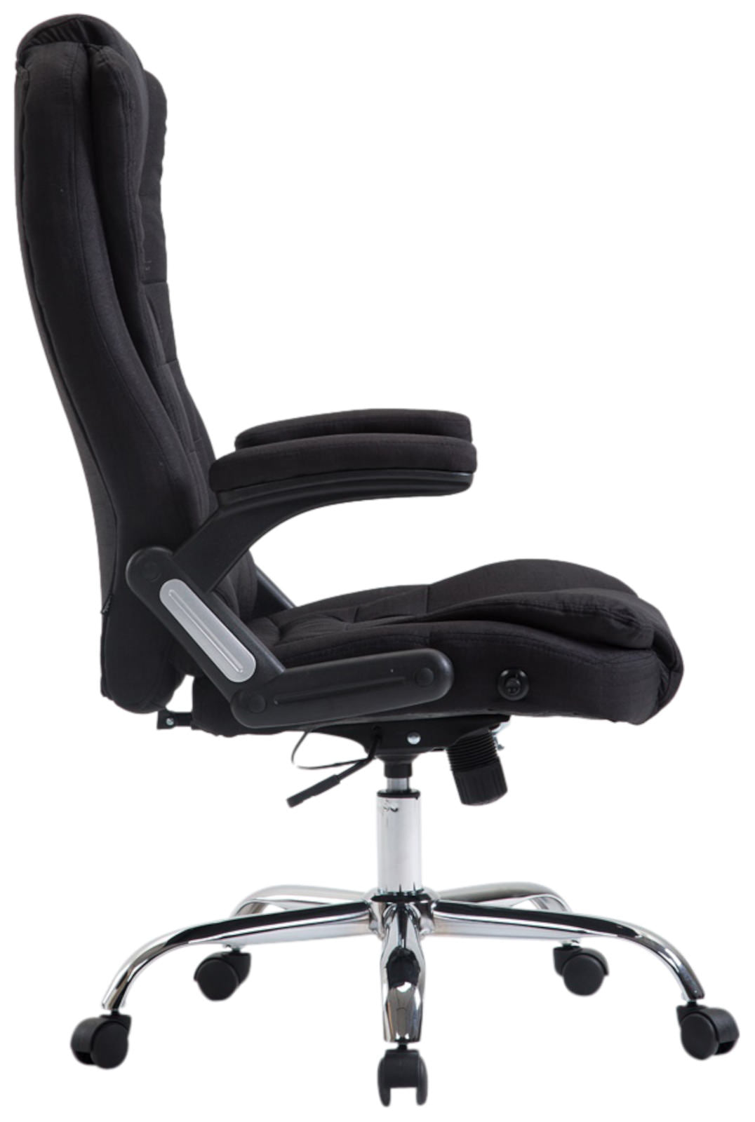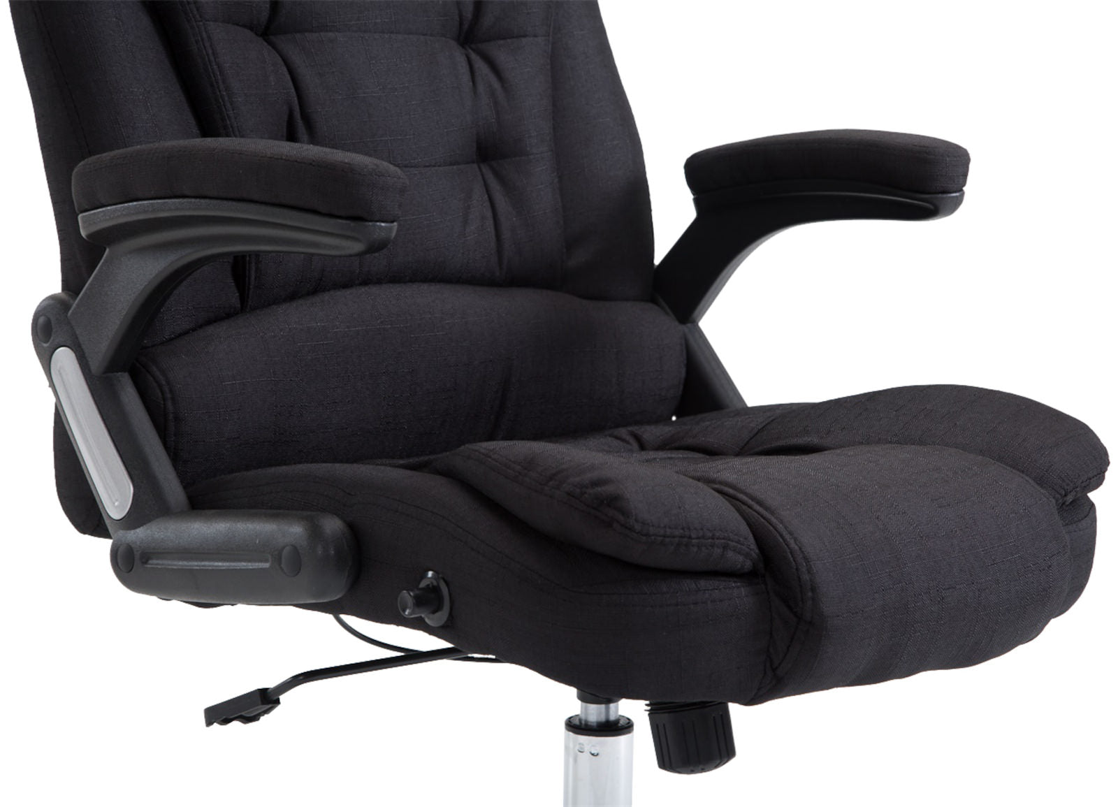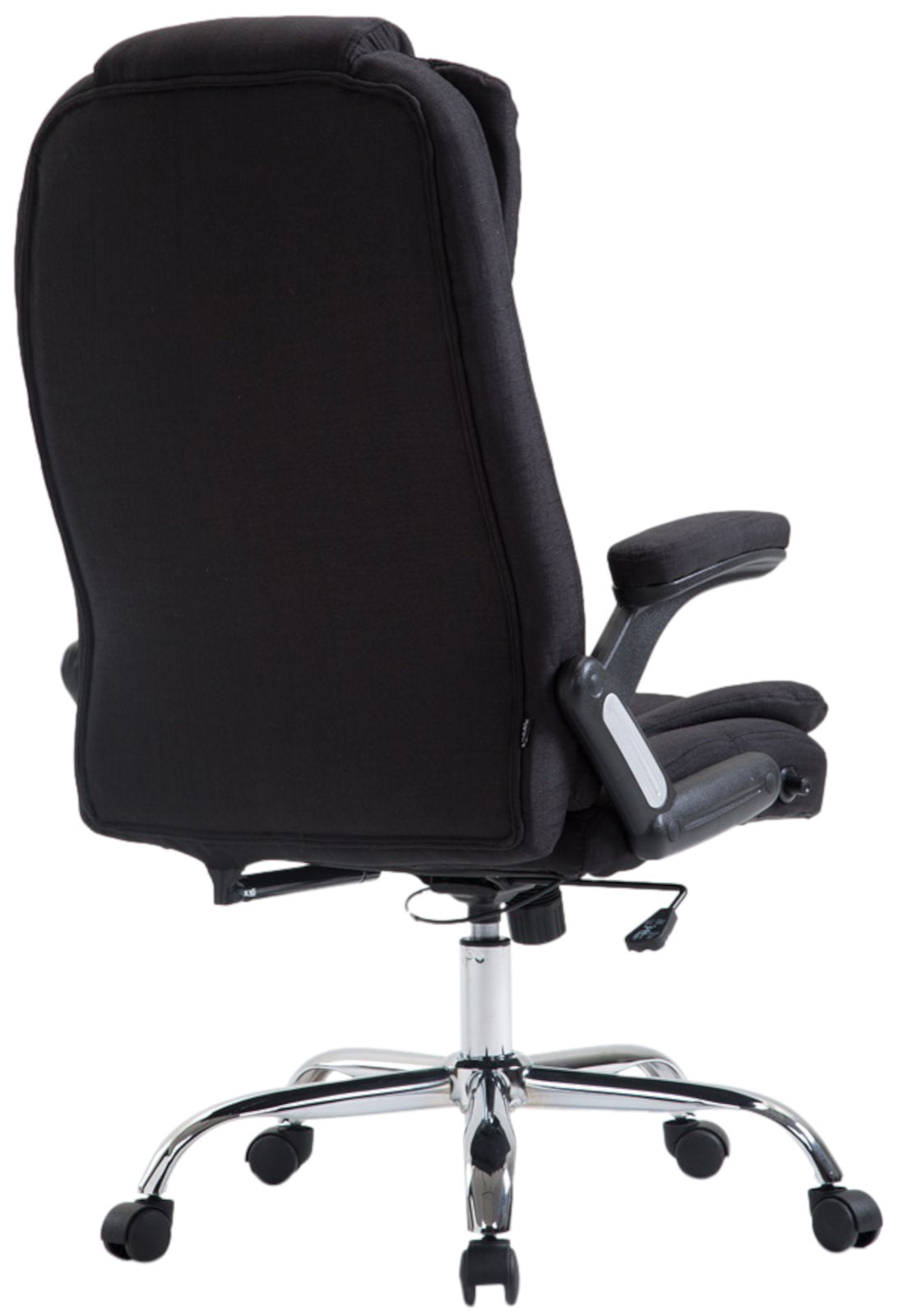 Fauteuil de bureau XXL sur roulettes confortablement rembourrés avec accoudoirs en tissu noir et métal chromé 10_0002667