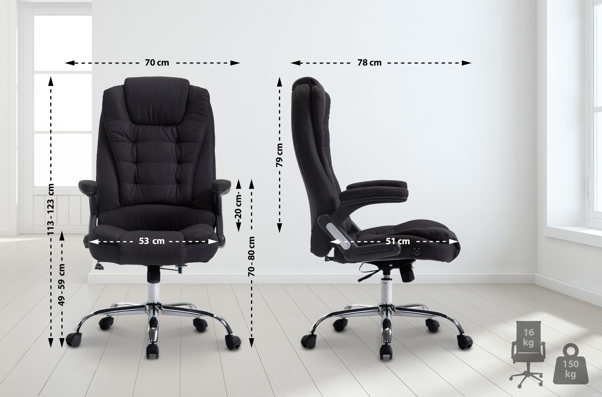 Cette chaise de bureau peut supporter le poids jusqu à 150 kg et elle est idéale pour les personnes grandes et en surpoids.