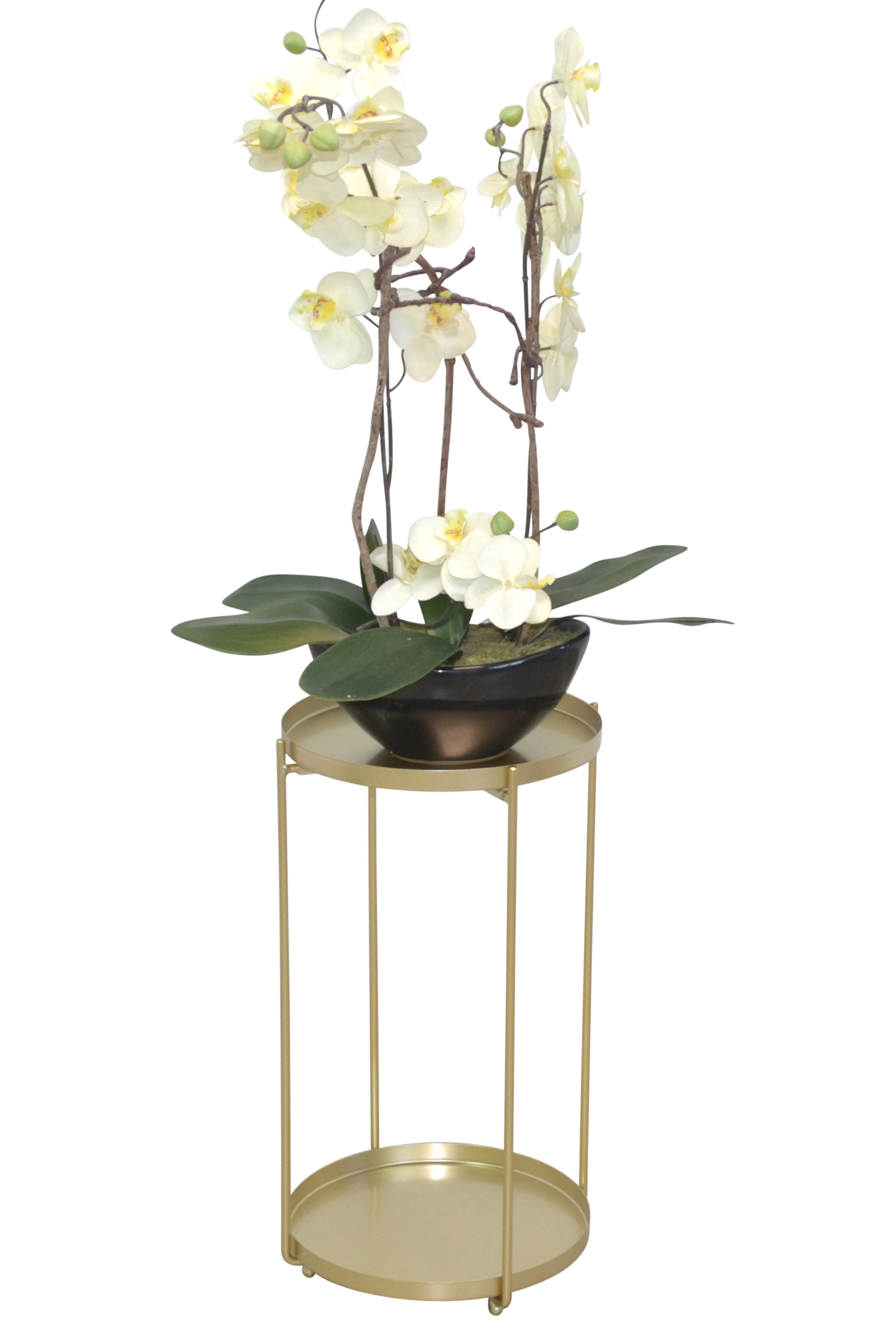 Porte-Plantes Rond en Métal doré Hauteur 46 cm Finition Lisse Surface Ø25 cm avec Rebord DEC050080