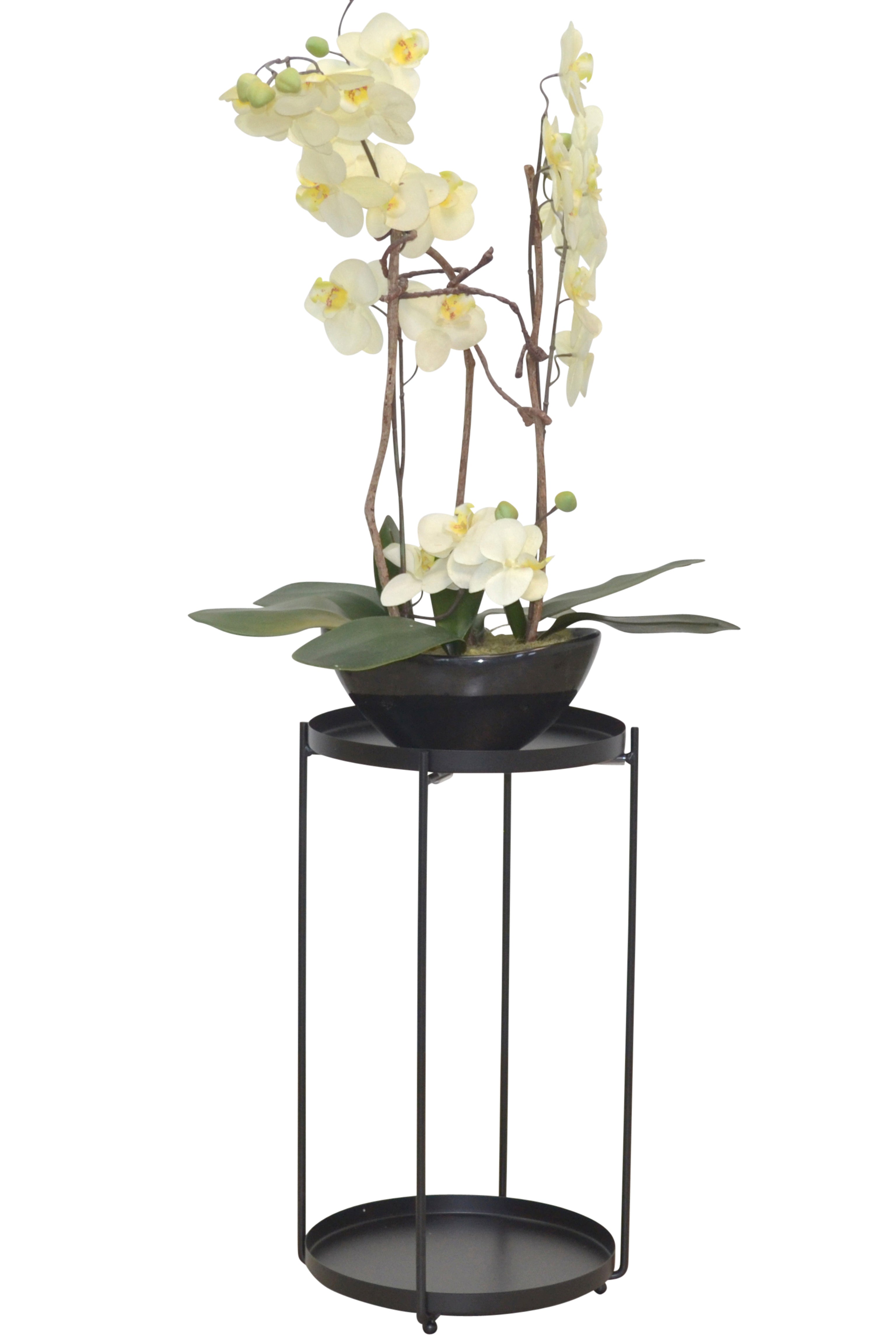 Porte-Plantes Rond en Métal noir Hauteur 46 cm Finition Lisse Surface Ø25 cm avec Rebord DEC050078