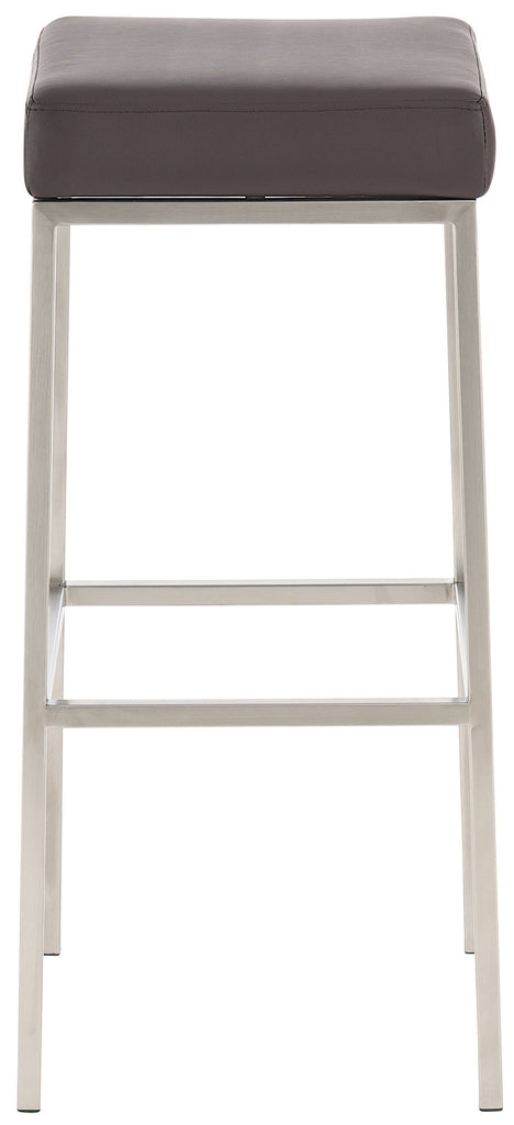 Tabouret de bar rembourré revêtement synthétique marron avec repose-pieds acier inoxydable hauteur de l'assise 85 cm 10_0000428