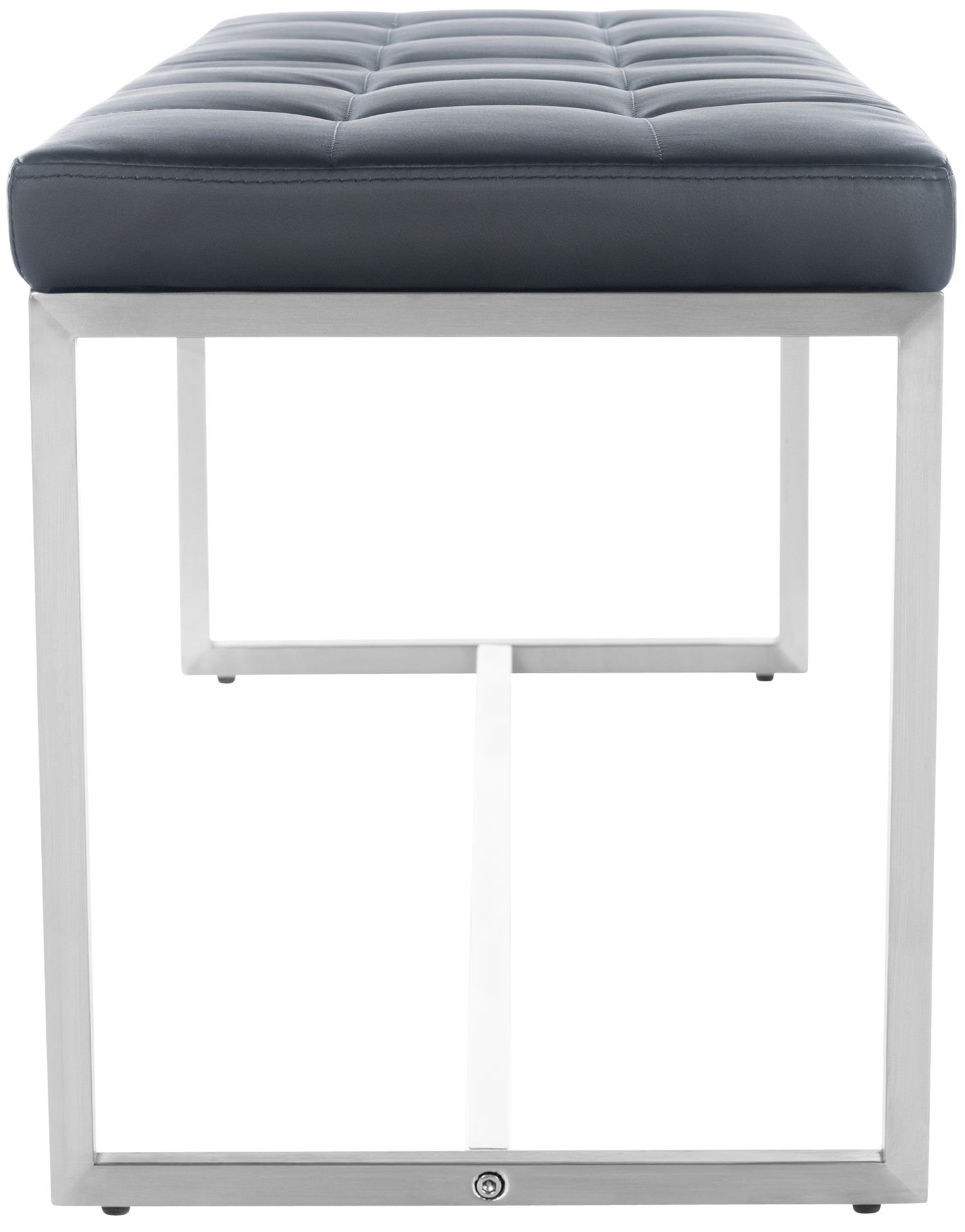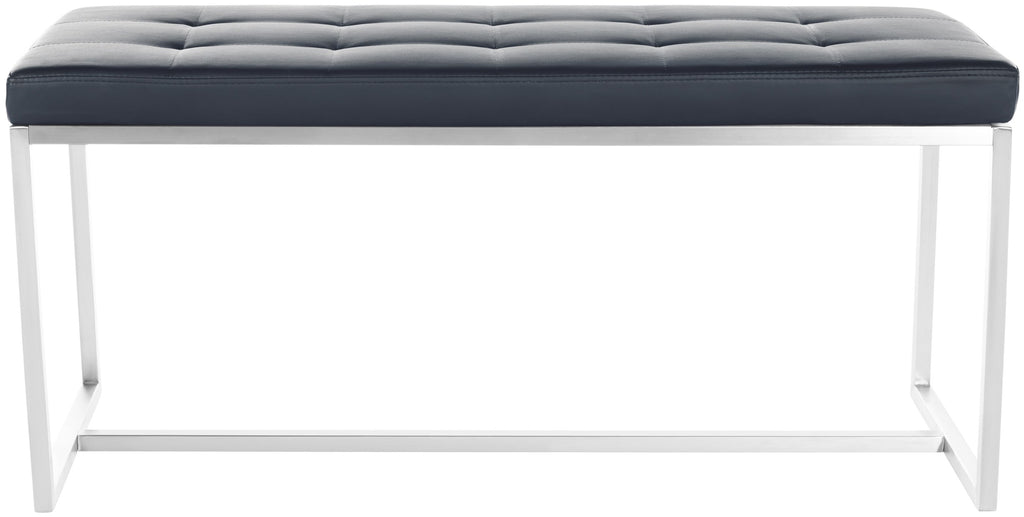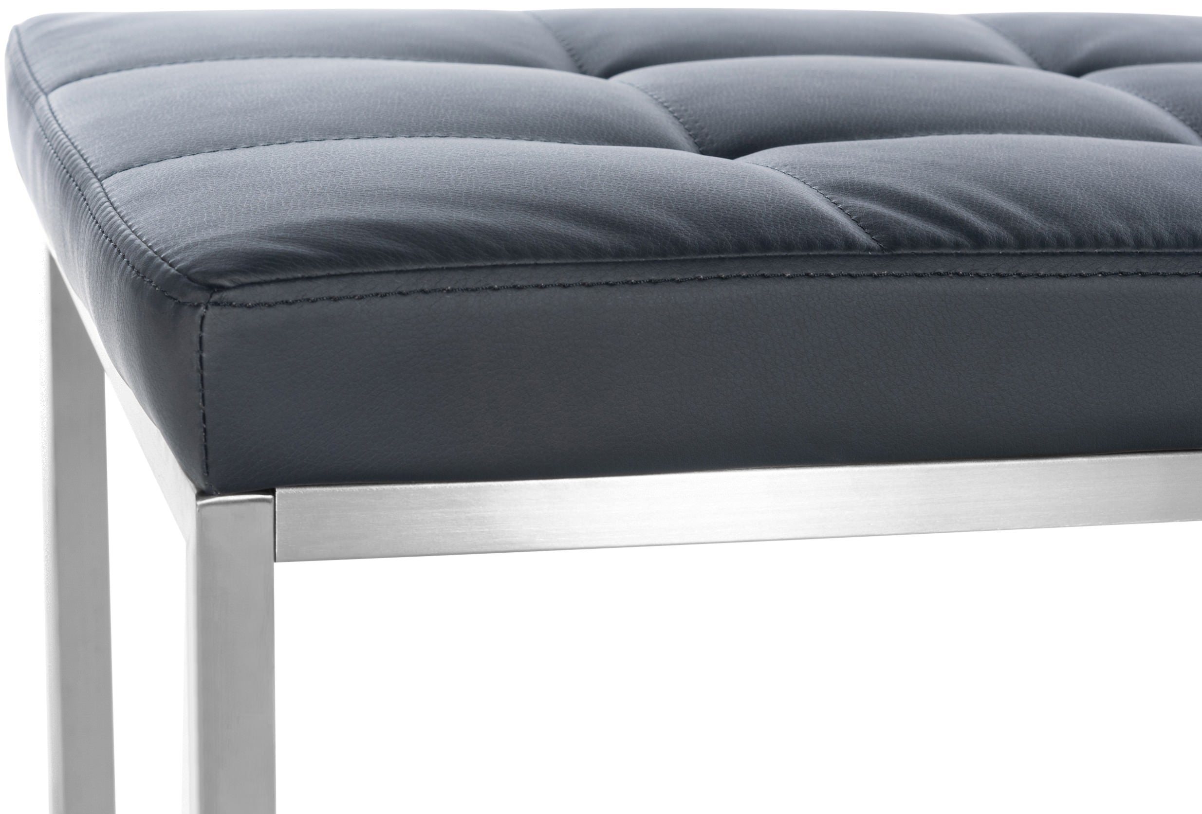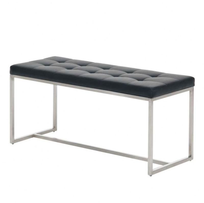 Banc tabouret assise capitonné en synthétique noir cadre en acier inoxydable 100x40 cm 10_0000802