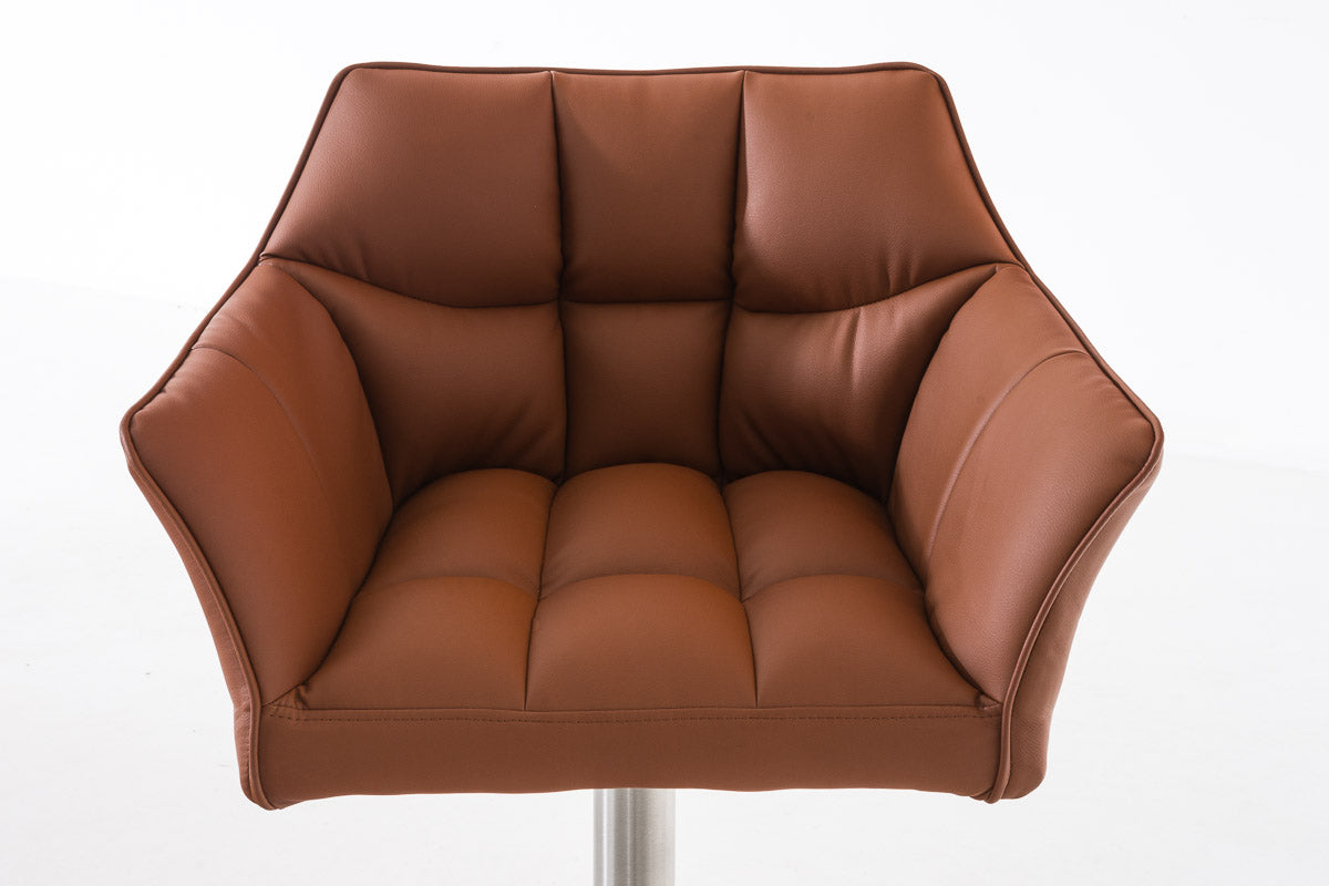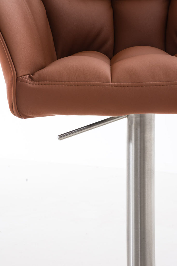 Tabouret de bar x1 réglable en similicuir marron clair assise enveloppante capitonnée et avec base carrée en acier inoxydable 10_0006009
