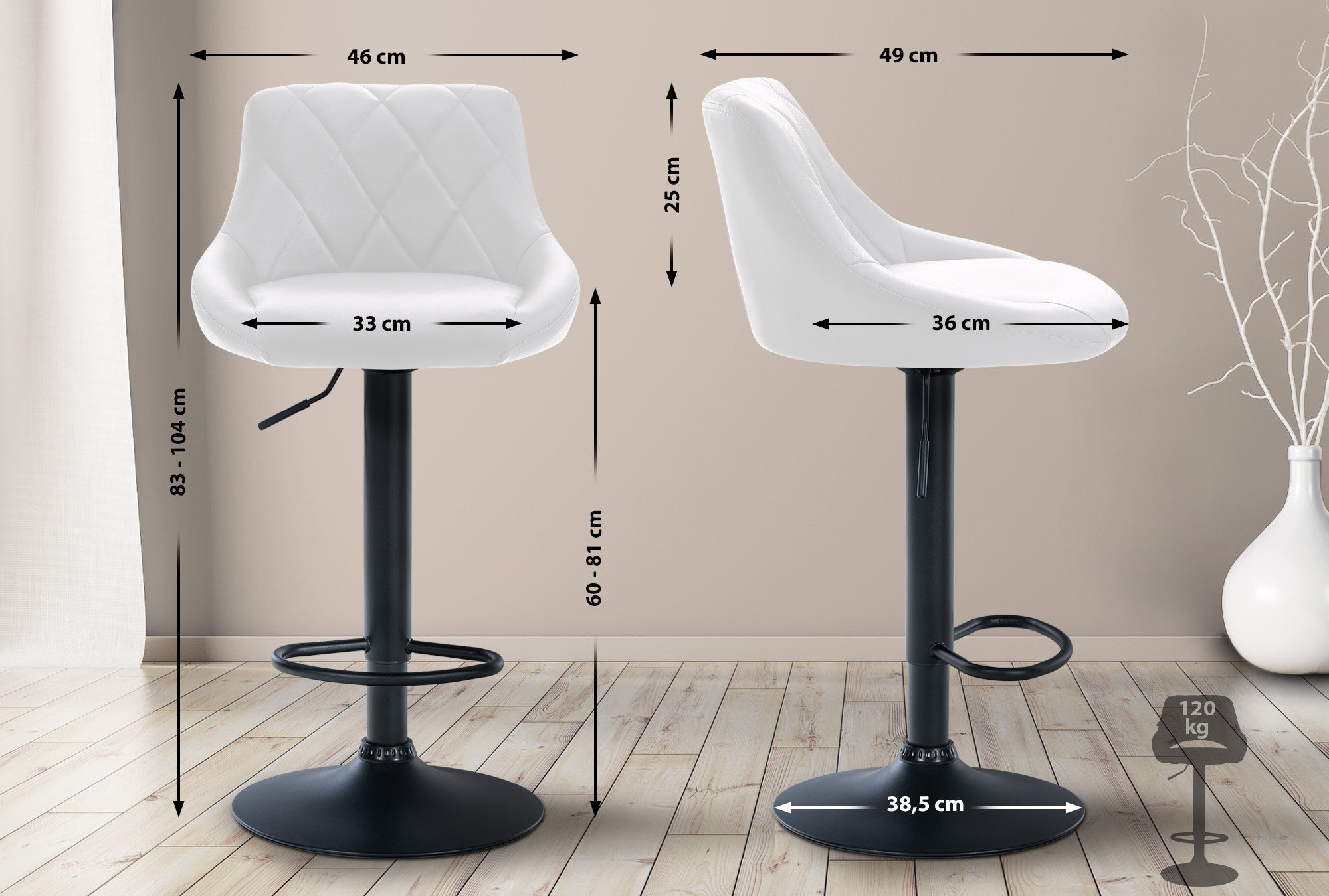 Siège (largeur x hauteur): 33 x 36 cm