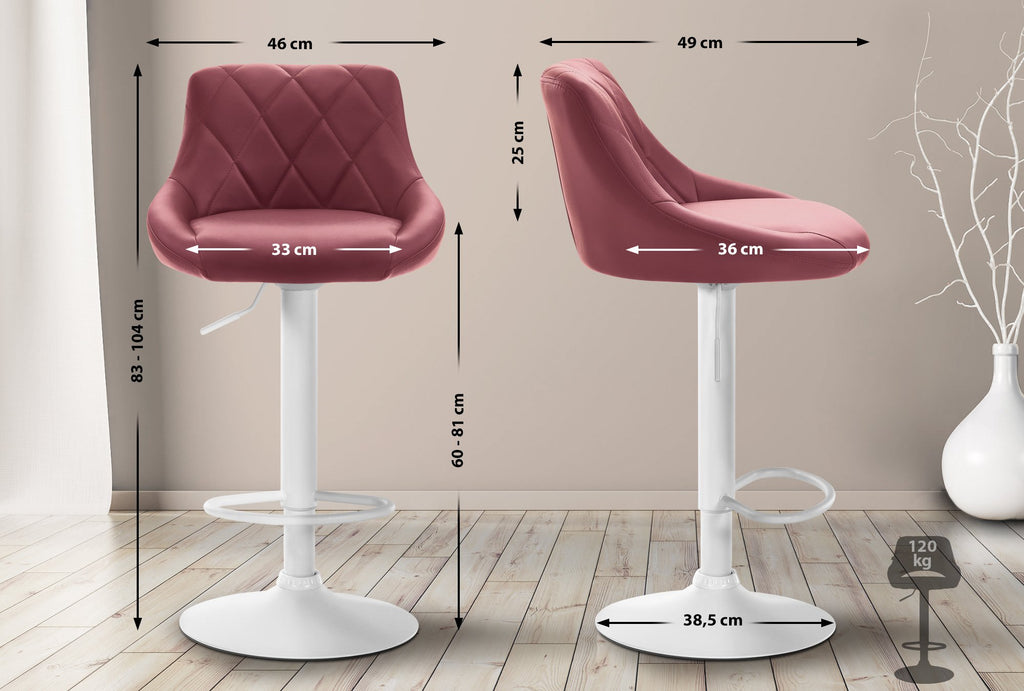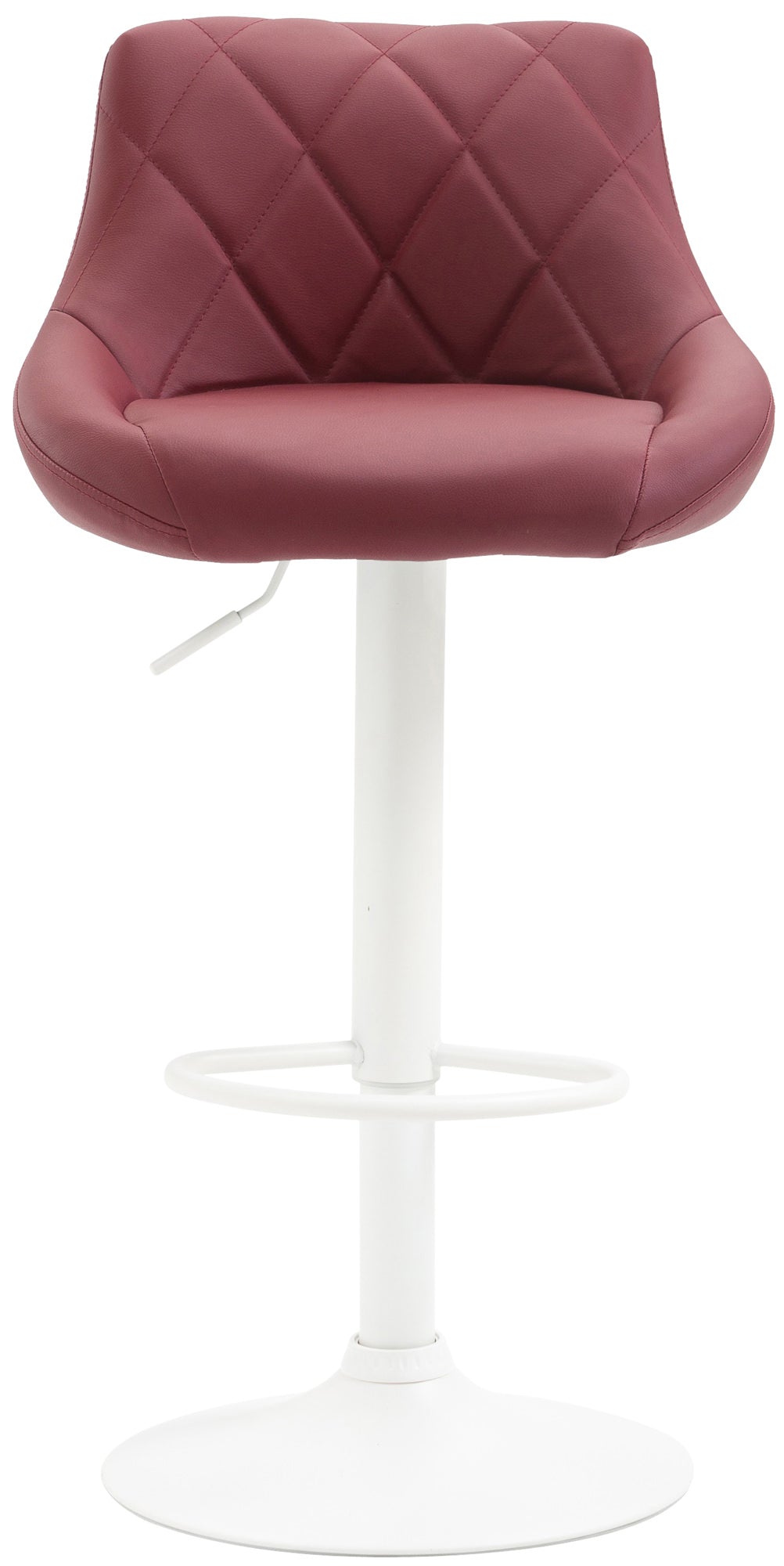 Tabouret de bar en synthétique bordeaux pivotant avec repose-pieds métal blanc coutures décoratives TDB10589