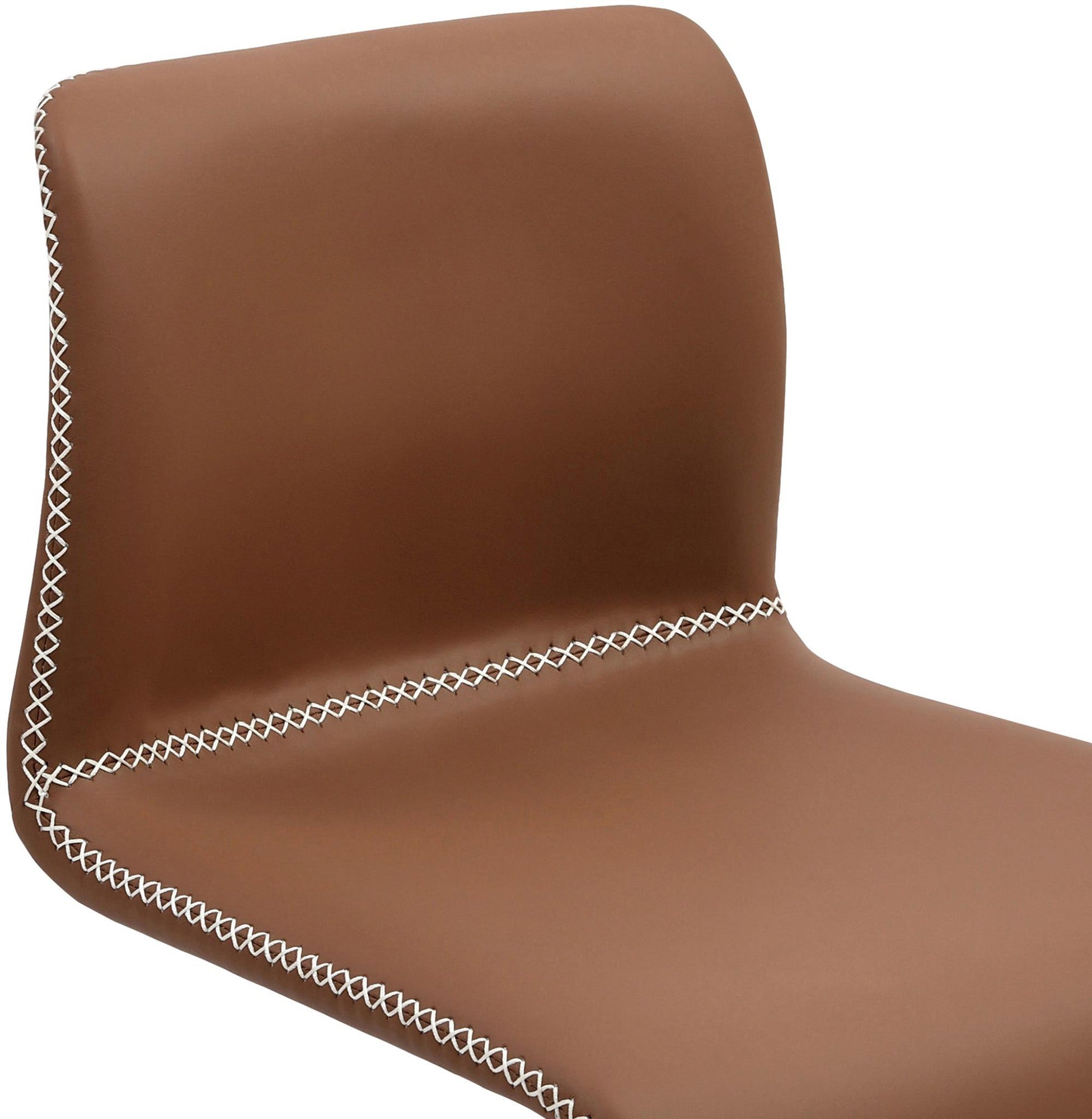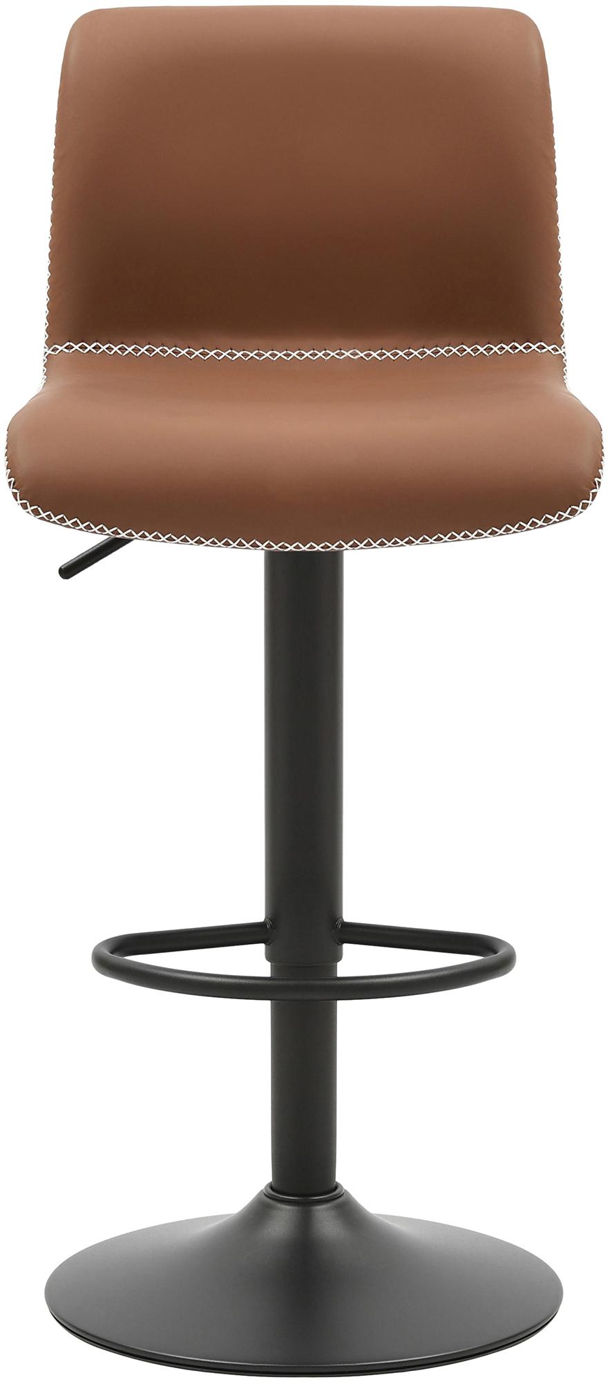 Tabouret de bar x1 avec coutures contrastées repose-pieds hauteur réglable en similicuir marron structure métallique noir 10_0005631