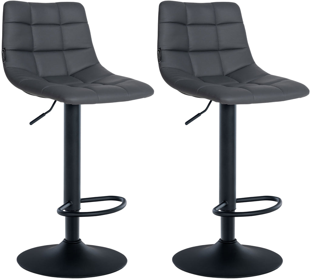 Lot de 2 tabourets de bar en synthétique gris base métal noir mat réglable en hauteur et repose-pieds TDB10636