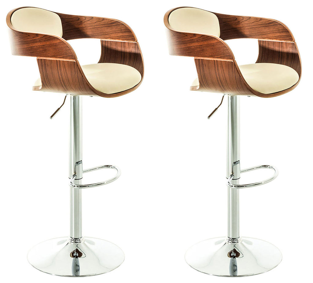 Tabouret de bar avec repose-pied design moderne assise en bois et synthétique crème pieds chromé 10_0000064