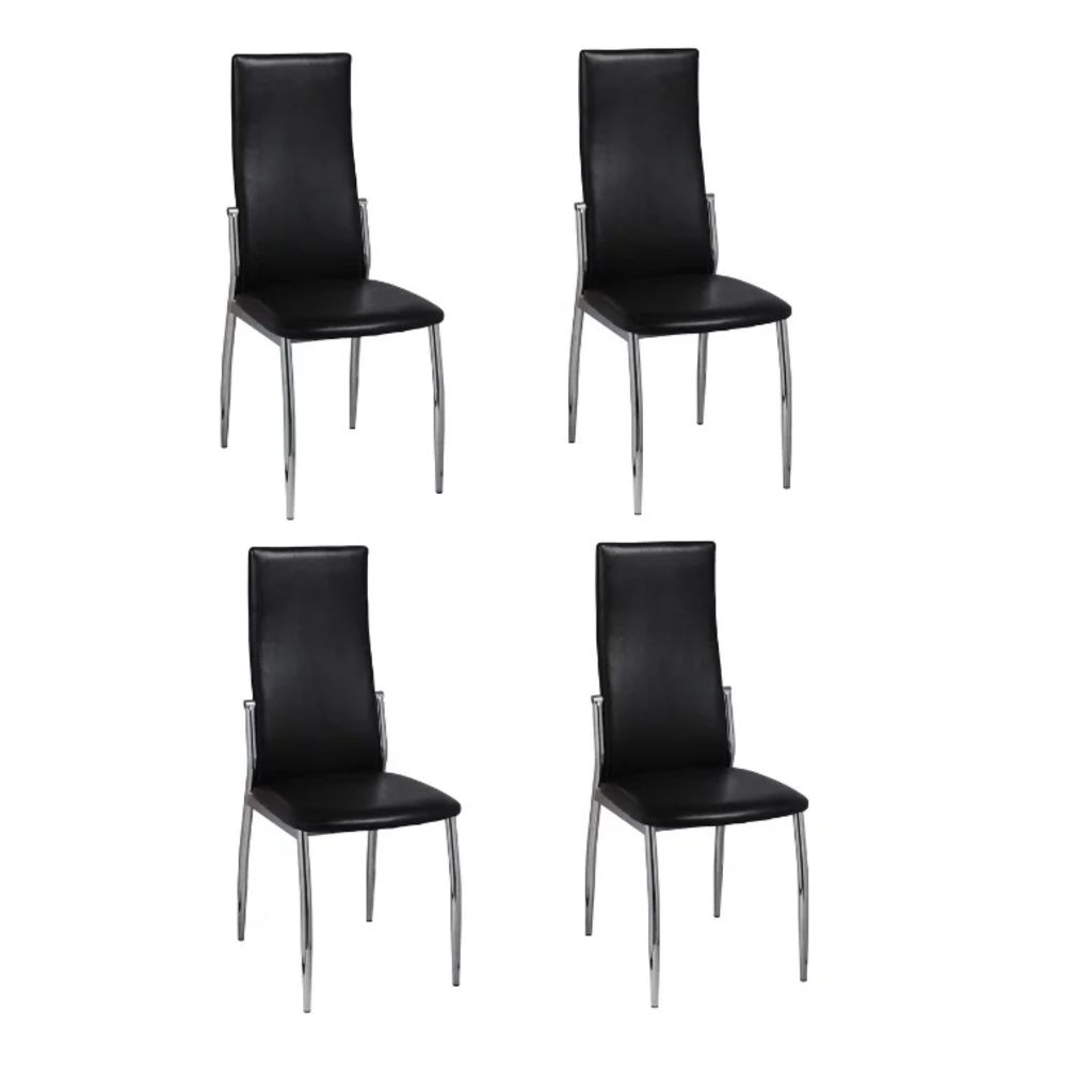 Lot de 4 chaises de salle à manger cuisine confortable et moderne dossier cristaux en synthétique noir CDS021807