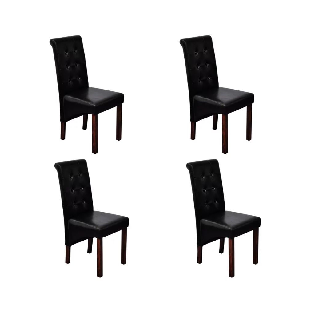 Lot de 4 chaises de salle à manger cuisine capitonné design classique en synthétique noir CDS021799