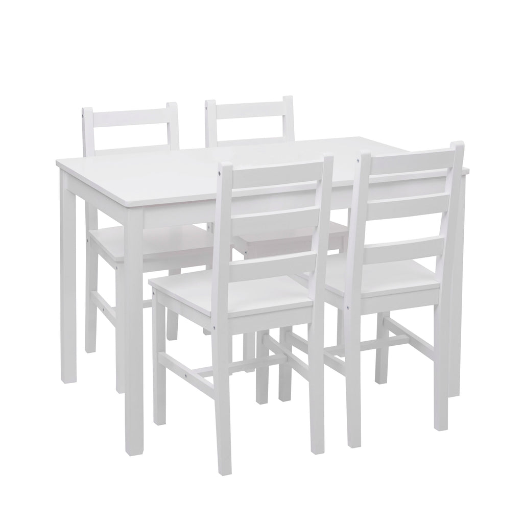 Lot de 4 chaises avec table de salle à manger ou cuisine design simple en bois blanc 04_0006732