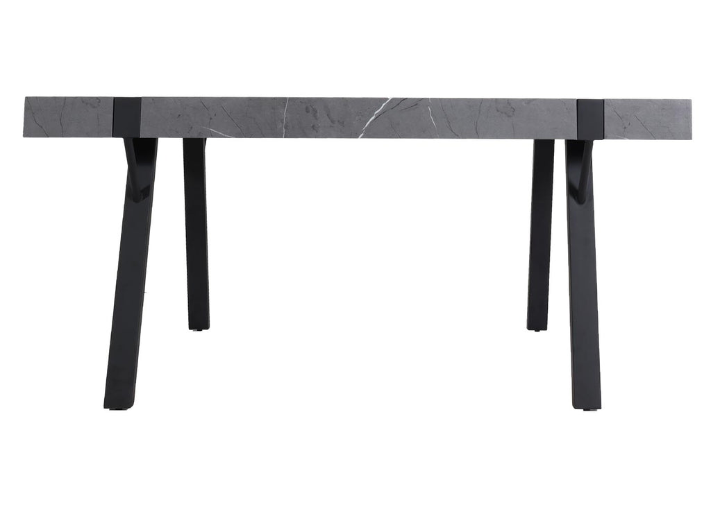 Table à manger design industriel 150x90 cm MDF aspect marbre gris et fer 04_0008562