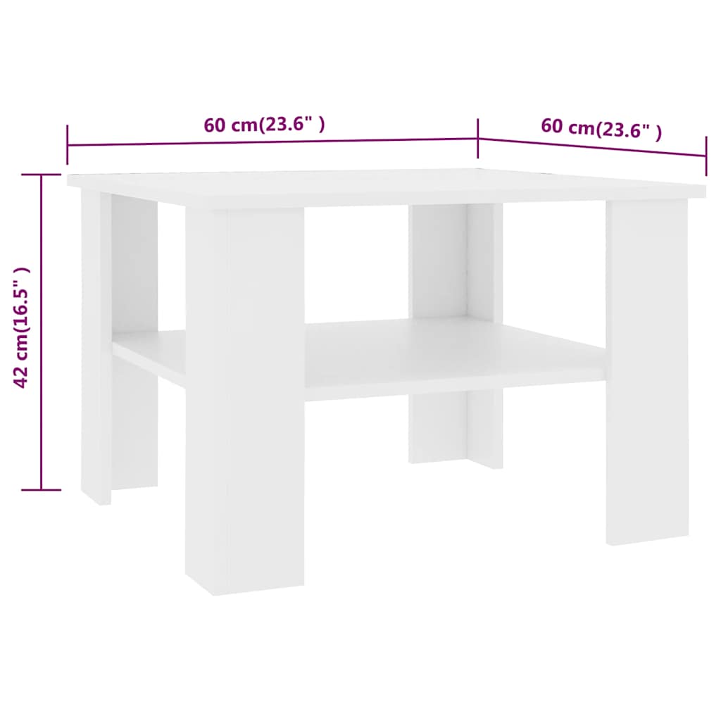 Table basse avec étagère design moderne et contemporaine 60 x 60 x 42 cm bois d’ingénierie blanc DEC037931