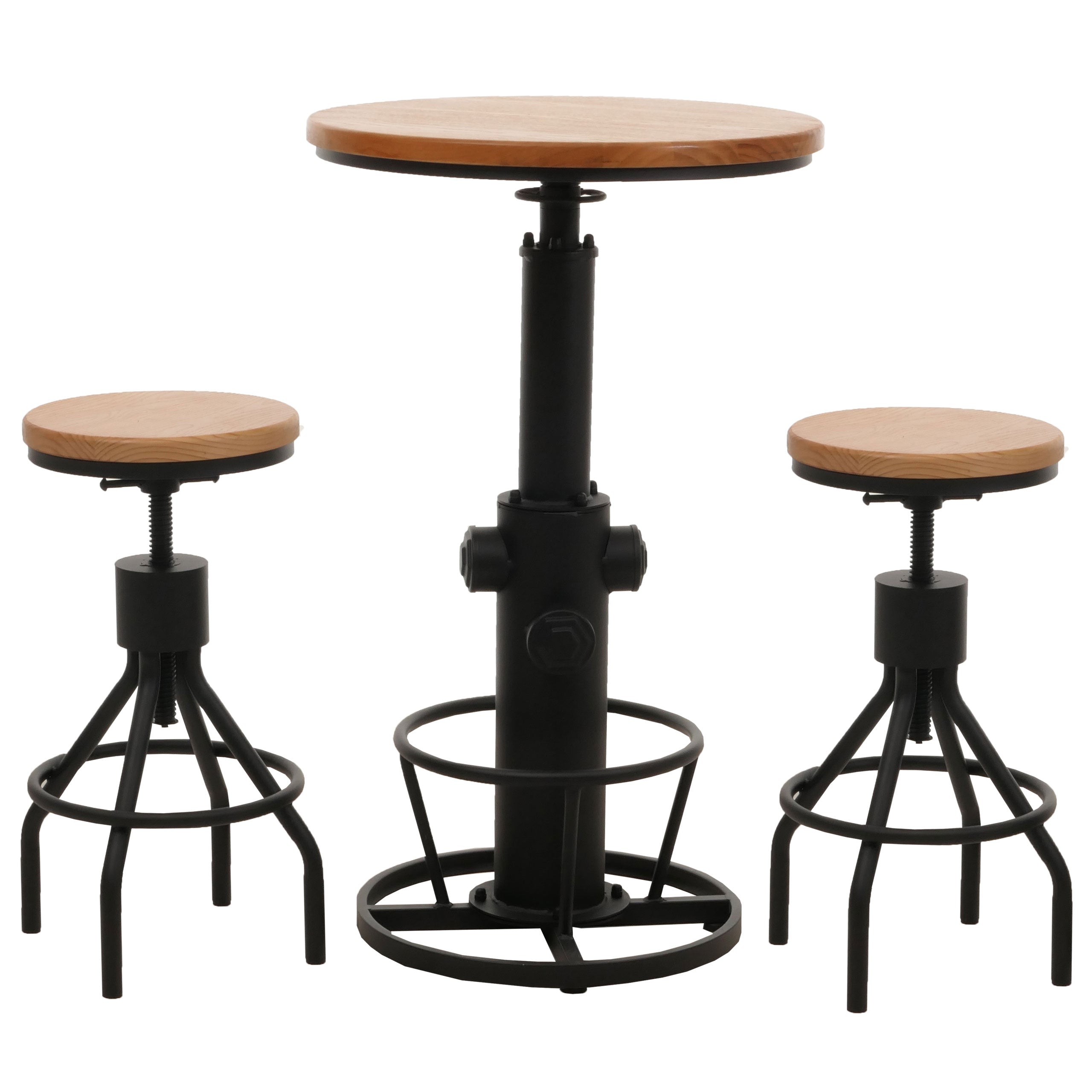 2x tabourets de bar avec table de bar rotatif design industriel en bois naturel et métal 04_0006769