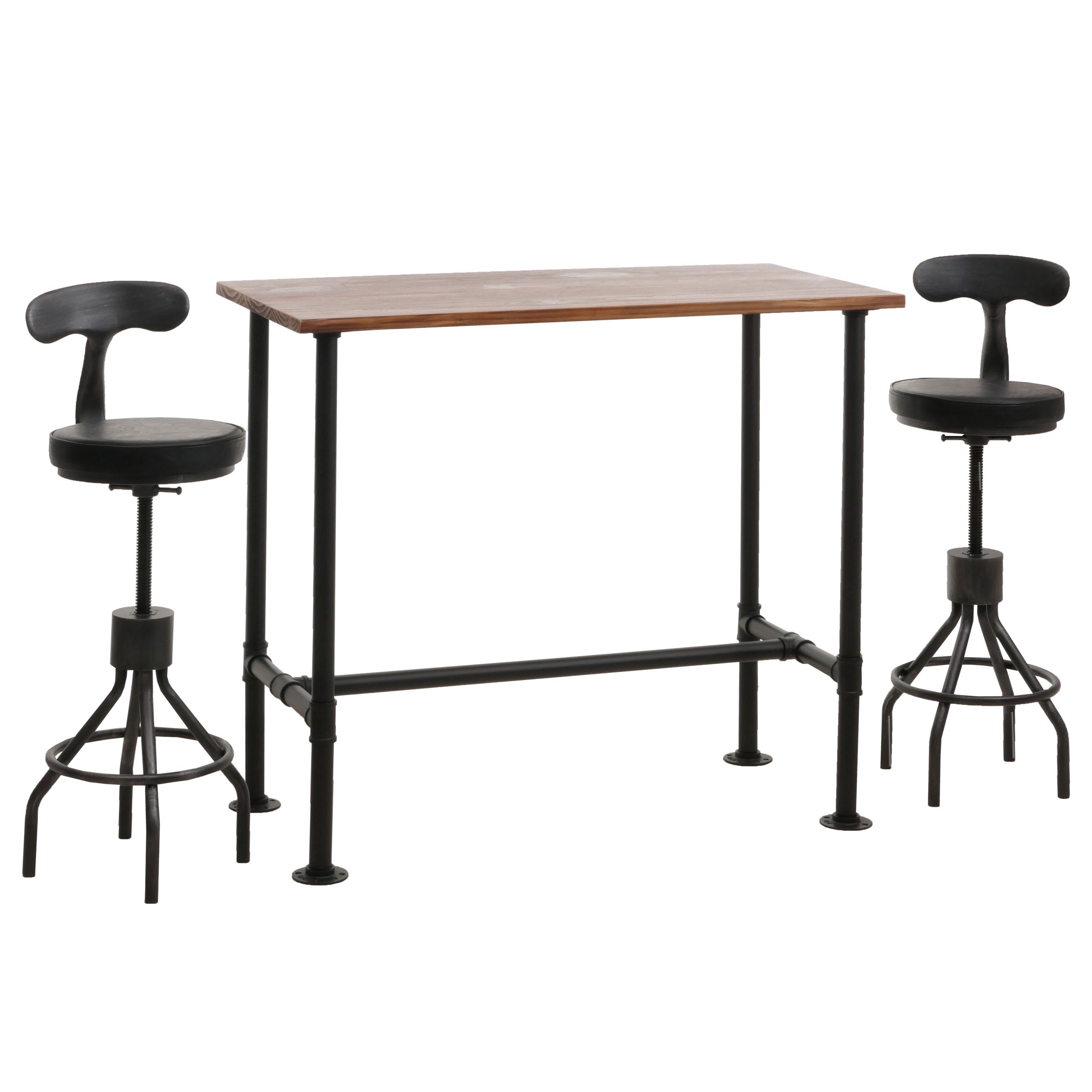 2x tabourets de bar avec dossier repose-pieds réglable en hauteur avec table design industriel en métal et PVC noir 04_0006773