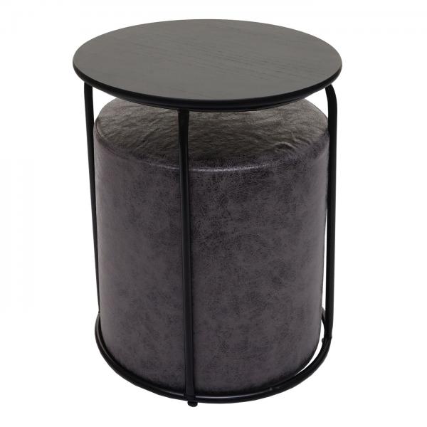 Set table-tabouret table d'appoint repose-pieds MDF PVC anthracite et métal noir 04_0007478