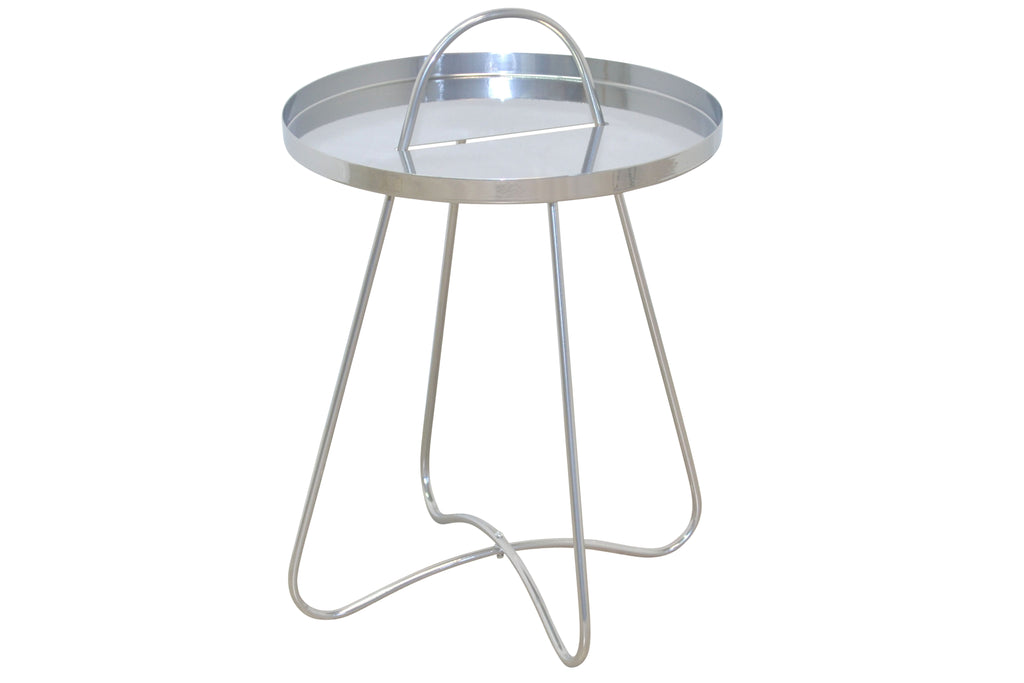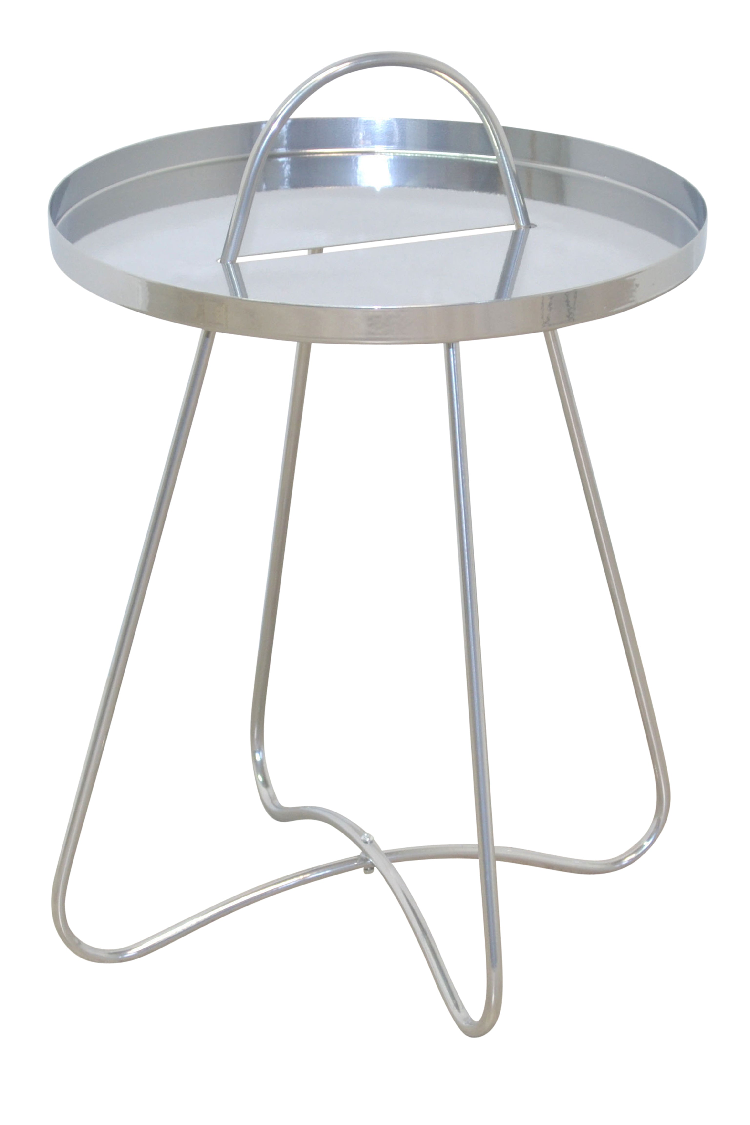 Table d’appoint design en métal argenté plateau rond avec poignée – Ø40 cm DEC050097