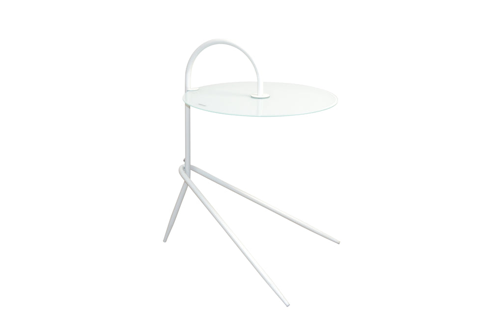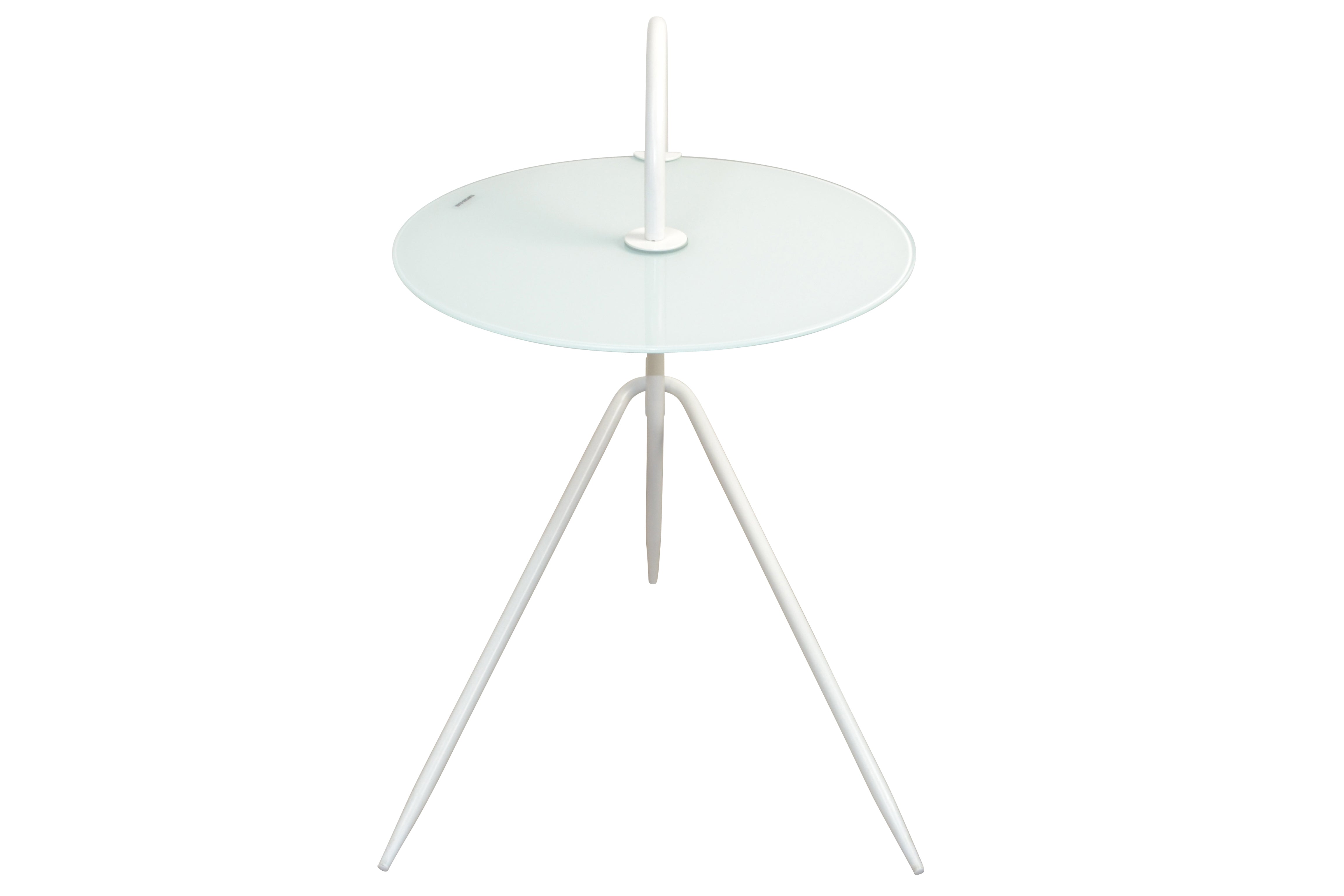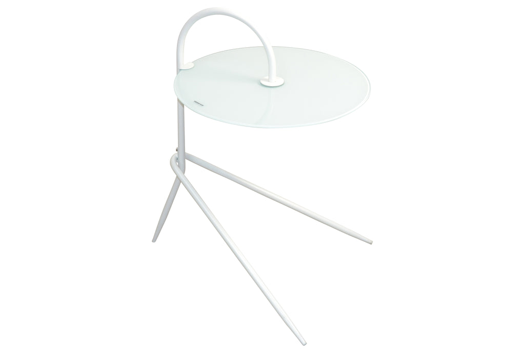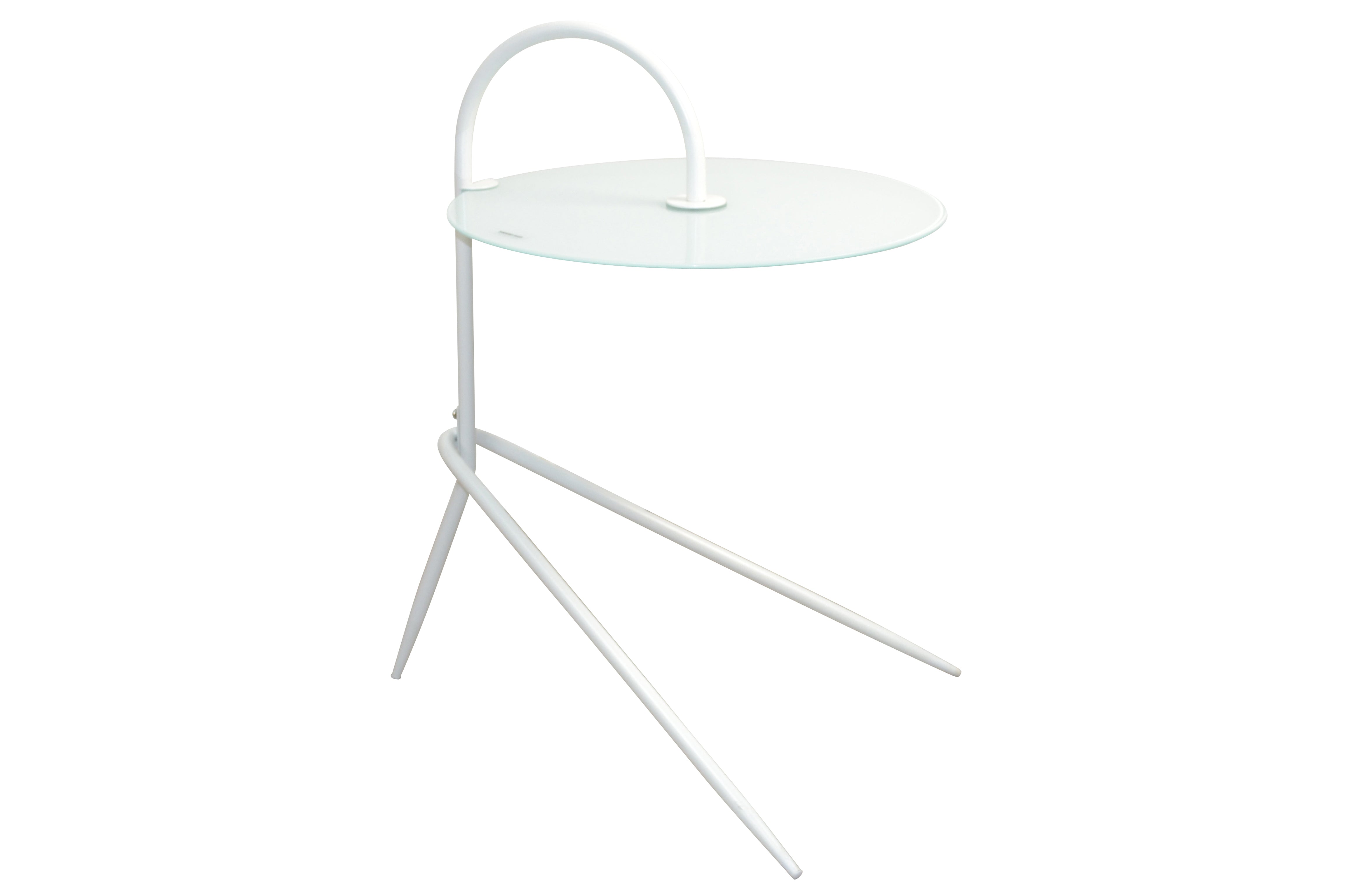 Table d’appoint moderne piètement en acier tubulaire blanc plateau rond verre blanc DEC050101