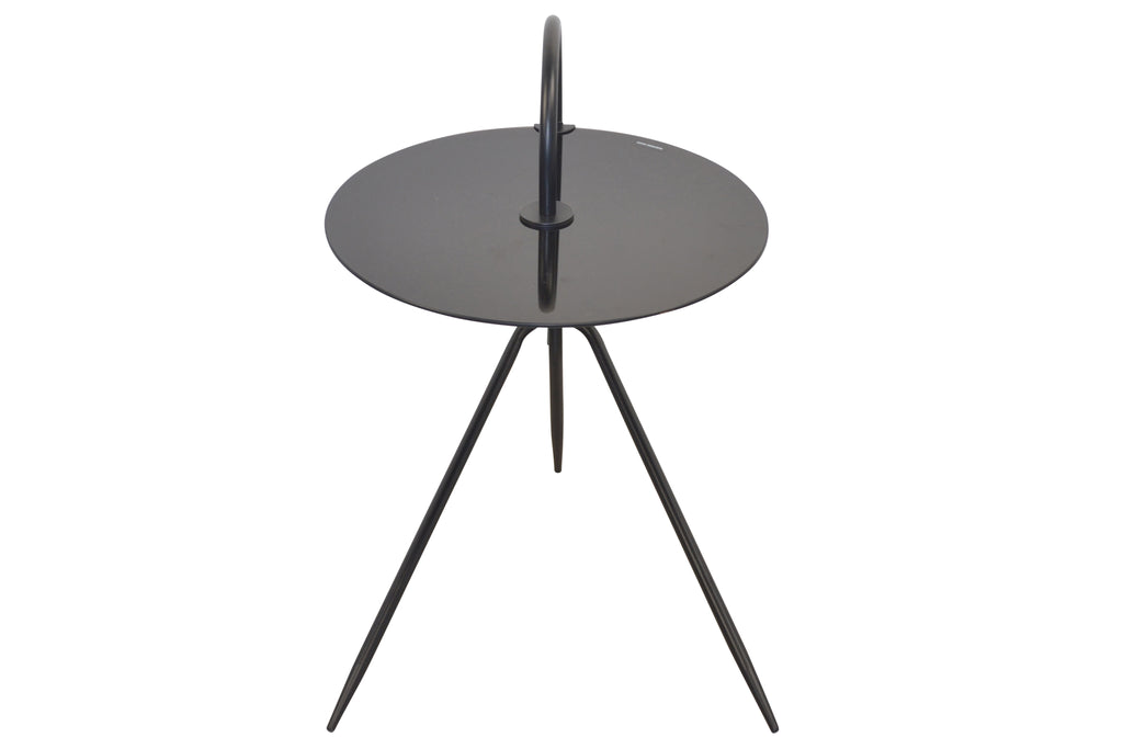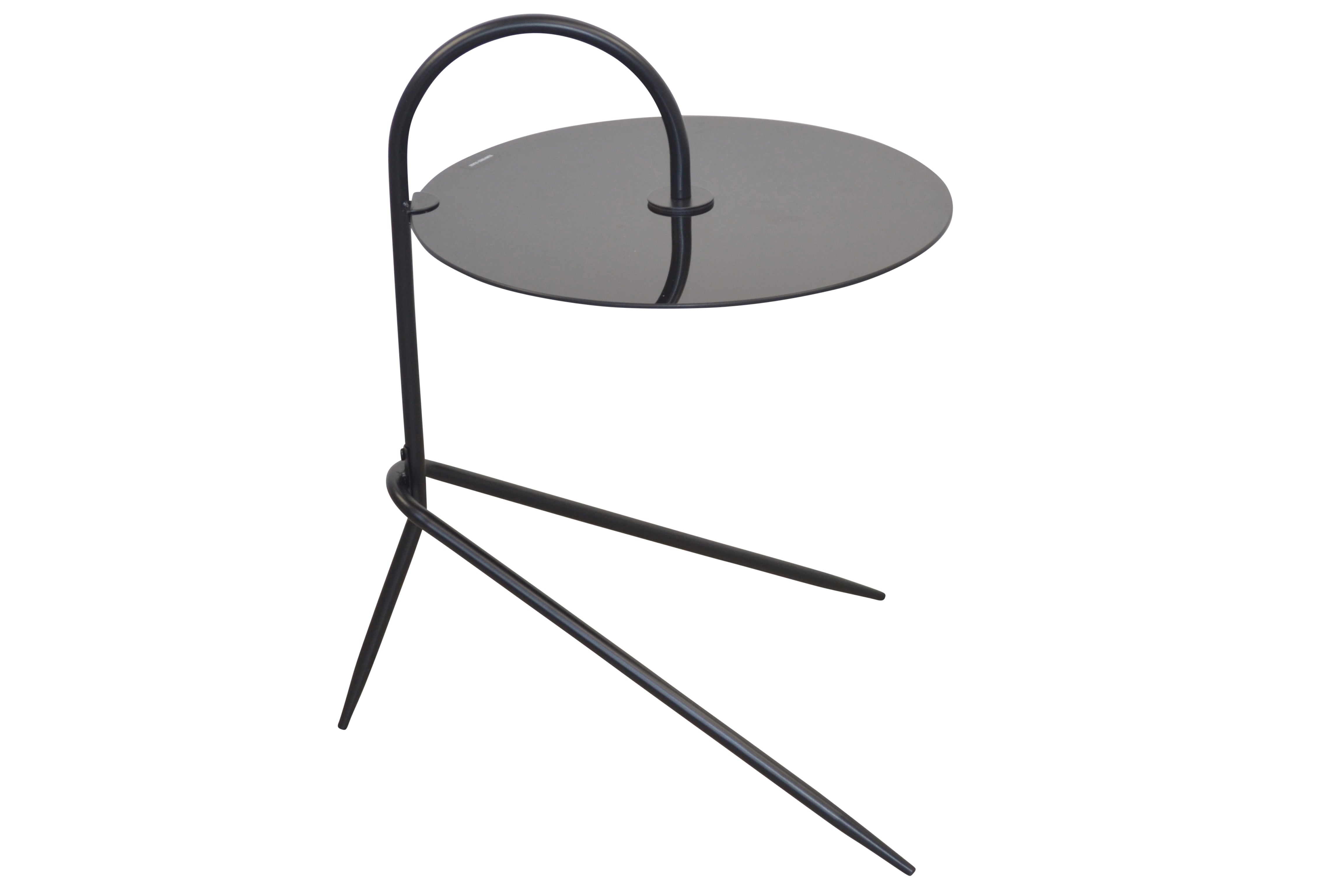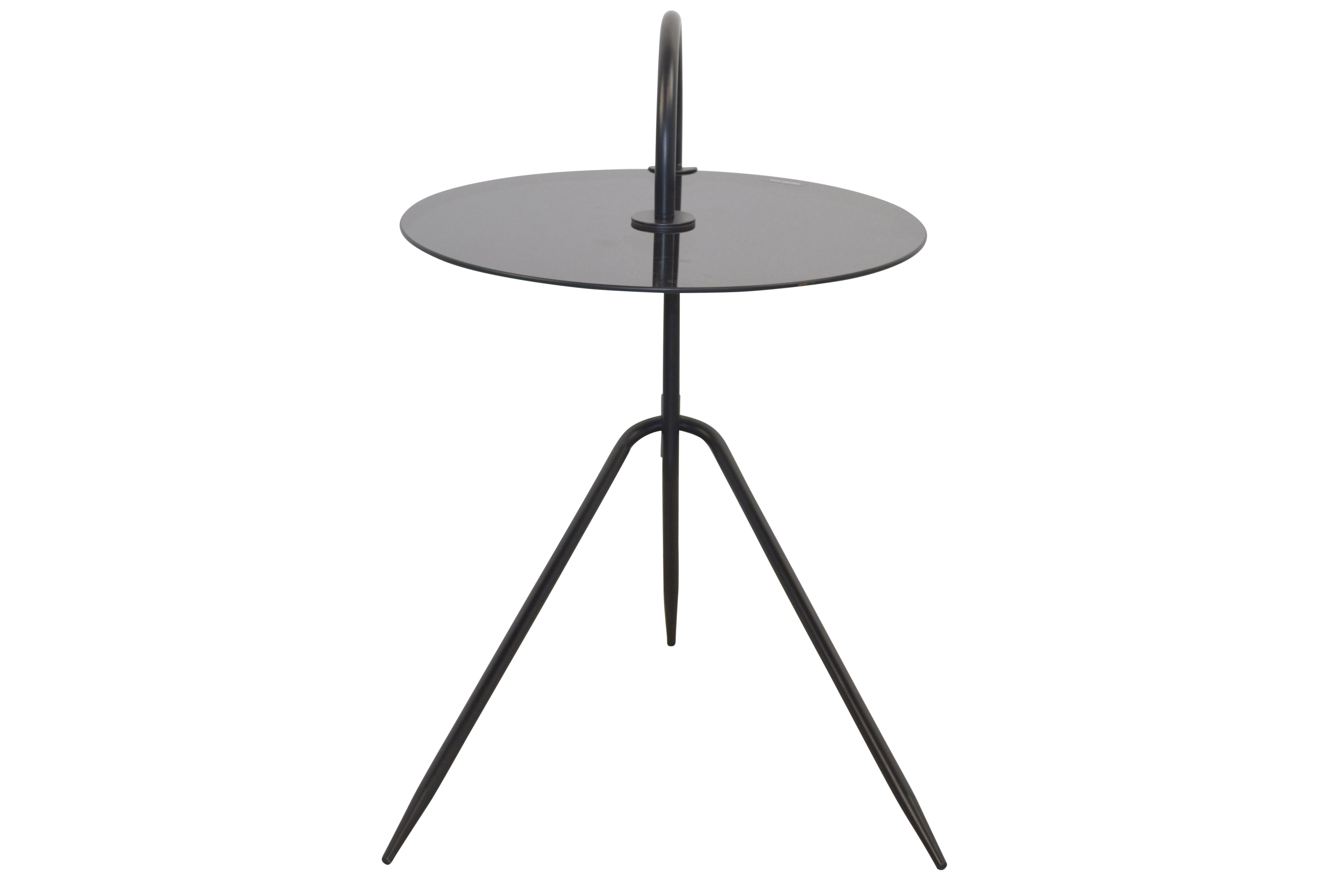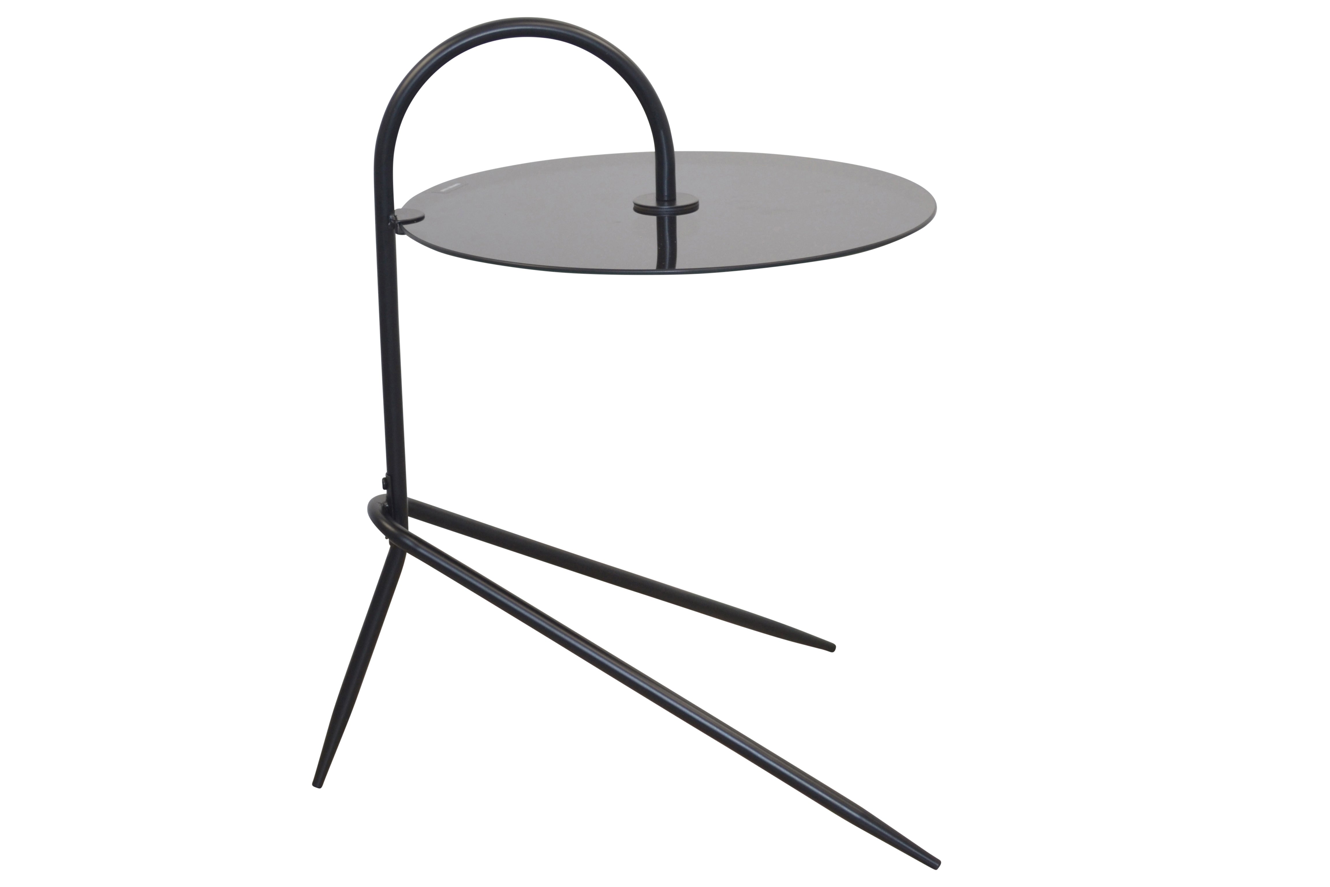 Table d’appoint moderne piètement en acier tubulaire noir plateau rond verre noir DEC050100