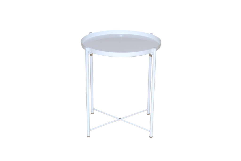 Plateau rond en métal laqué, assorti à la couleur du piètement