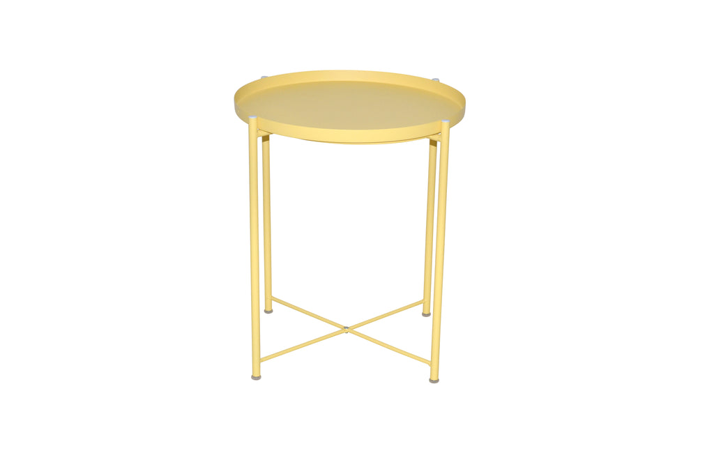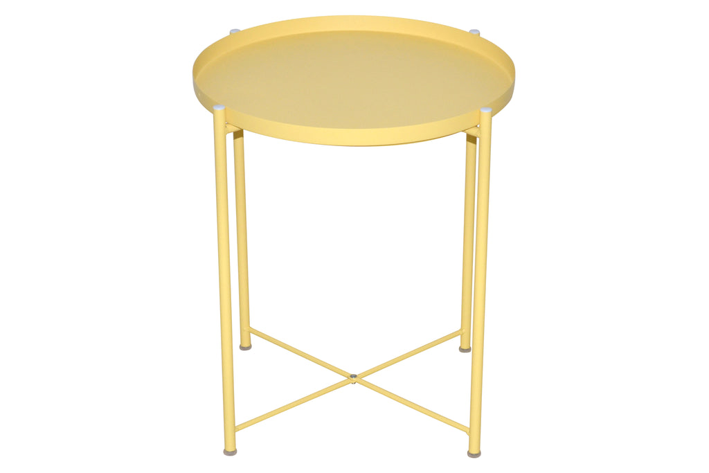 Plateau rond en métal laqué, assorti à la couleur du piètement