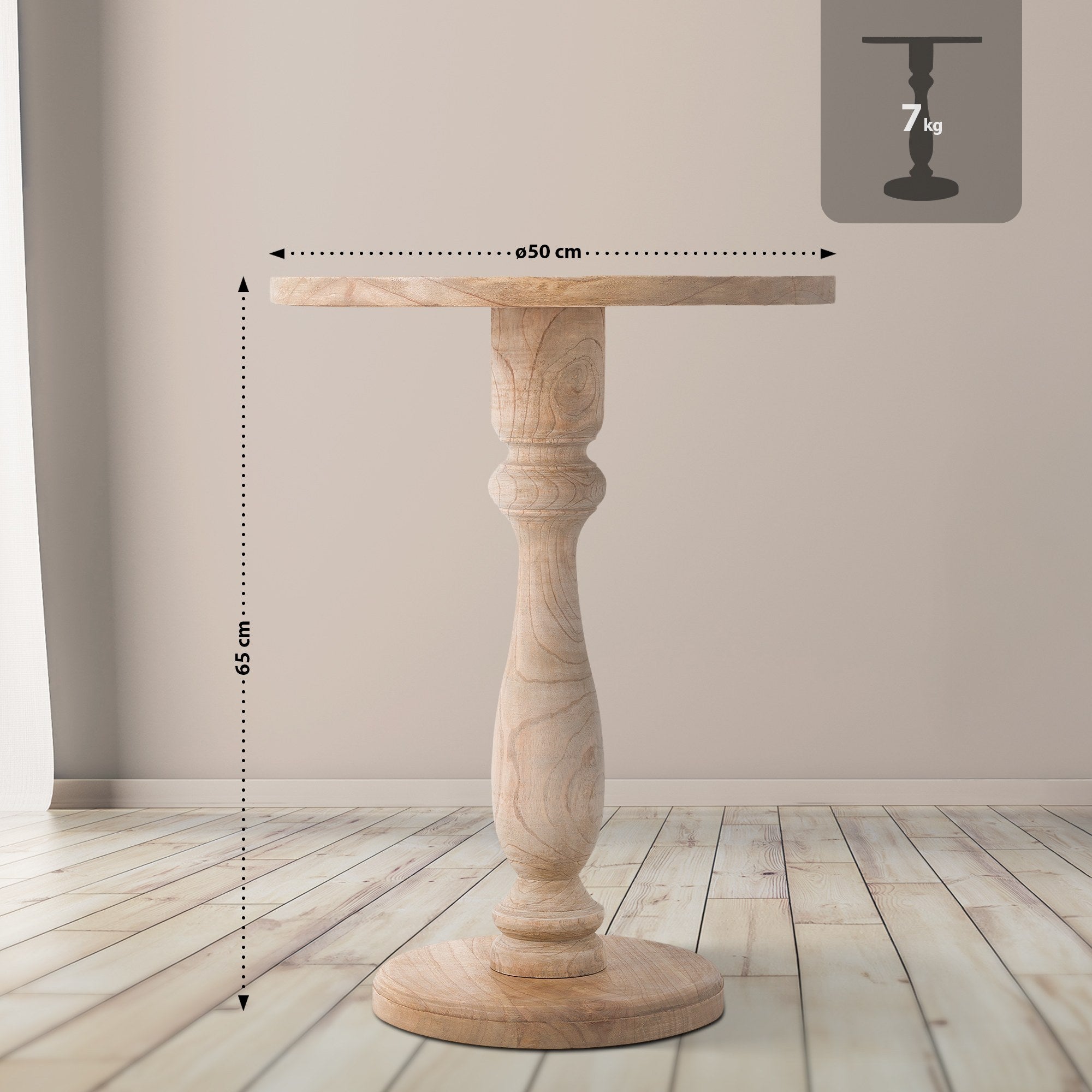 Table d’appoint ronde en bois de mindi massif 60 × Ø 50 cm fabriquée à la main 10_0009219